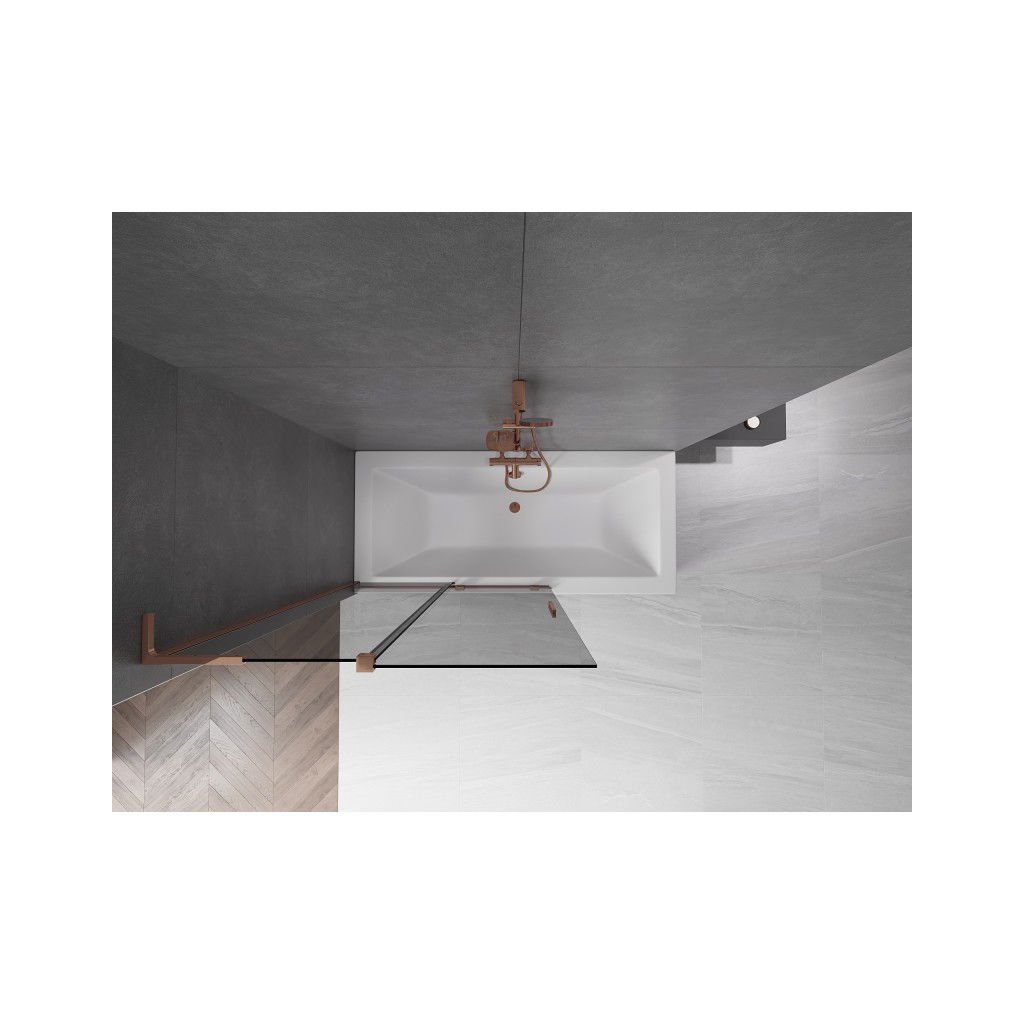Mexen Velar L, 2-krídlová posuvná vaňová zástena 110 x 150 cm, 8mm šedé sklo, ružové zlato, 896-110-003-41-60