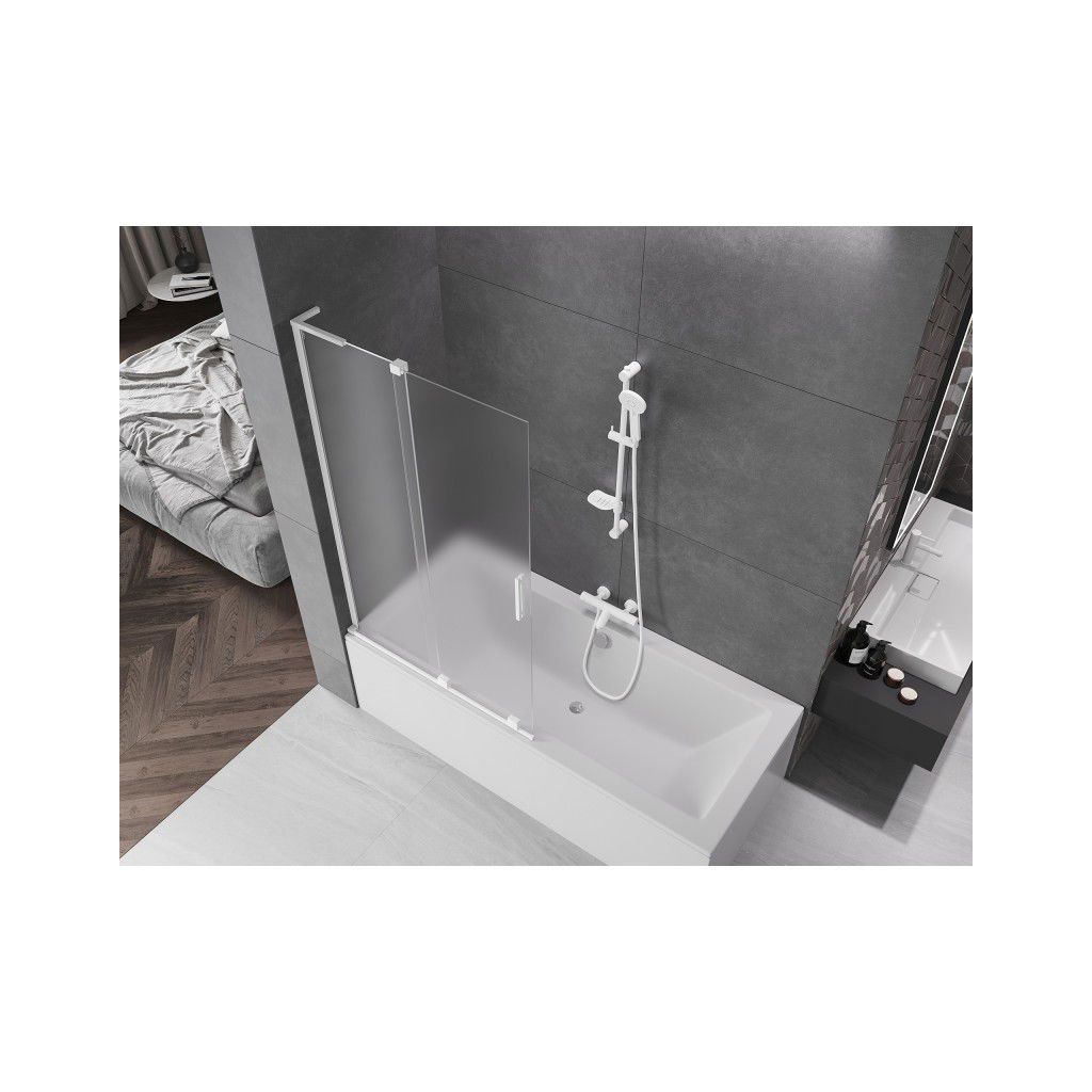 Mexen Velar L, 2-krídlová posuvná vaňová zástena 110 x 150 cm, 8mm sklo námraza, biela matná, 896-110-003-31-20