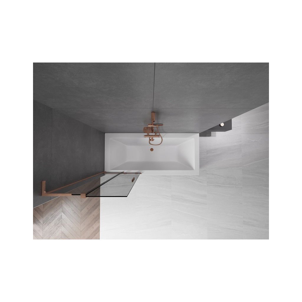 Mexen Velar L, 2-krídlová posuvná vaňová zástena 70 x 150 cm, 8mm šedé sklo, medená matná, 896-070-003-41-65