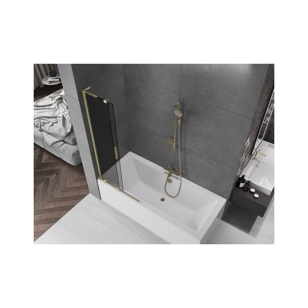 Mexen Velar L, 2-krídlová posuvná vaňová zástena 80 x 150 cm, 8mm šedé sklo, zlatá matná, 896-080-003-41-55