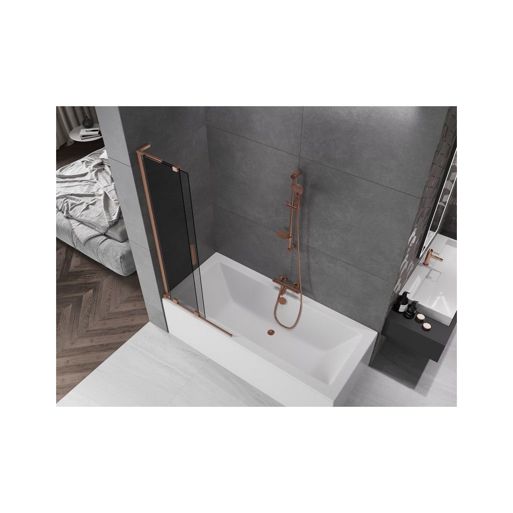 Mexen Velar L, 2-krídlová posuvná vaňová zástena 85 x 150 cm, 8mm šedé sklo, medená matná, 896-085-003-41-65