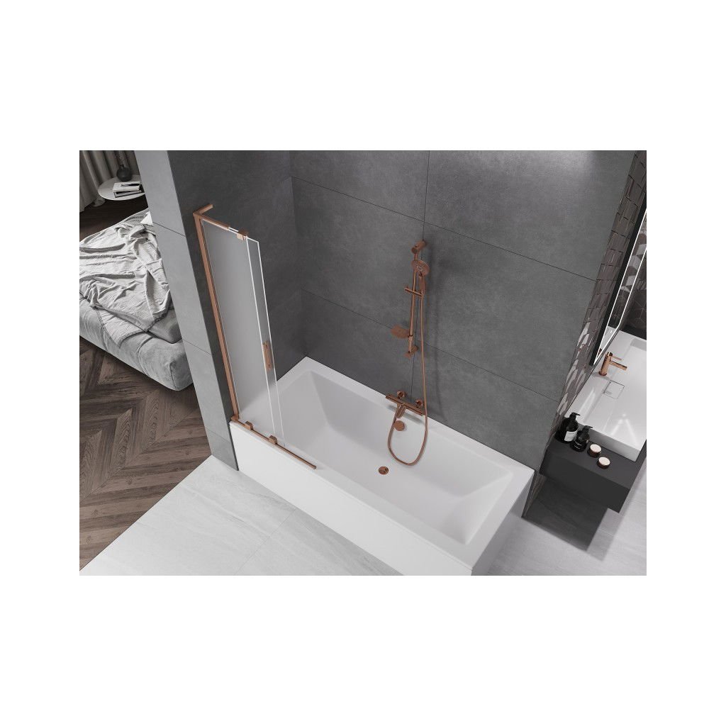 Mexen Velar L, 2-krídlová posuvná vaňová zástena 85 x 150 cm, 8mm sklo námraza, medená matná, 896-085-003-31-65