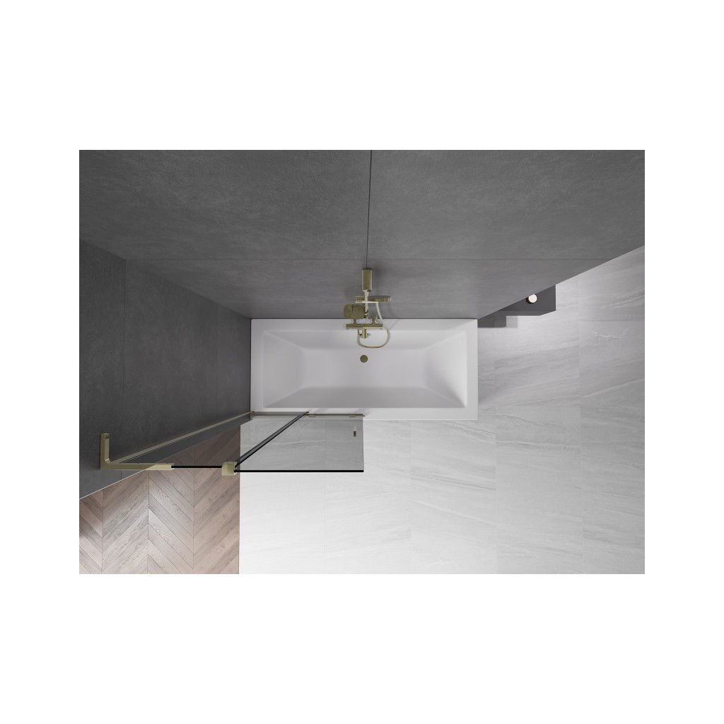Mexen Velar L, 2-krídlová posuvná vaňová zástena 90 x 150 cm, 8mm šedé sklo, zlatá lesklá, 896-090-003-41-50