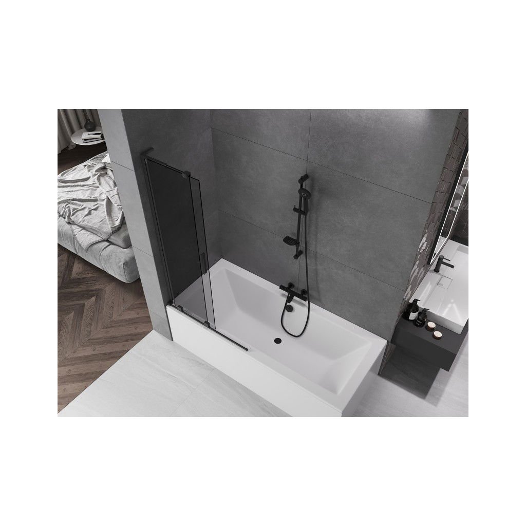 Mexen Velar L, 2-krídlová posuvná vaňová zástena 95 x 150 cm, 8mm šedé sklo, čierna matná, 896-095-003-41-70