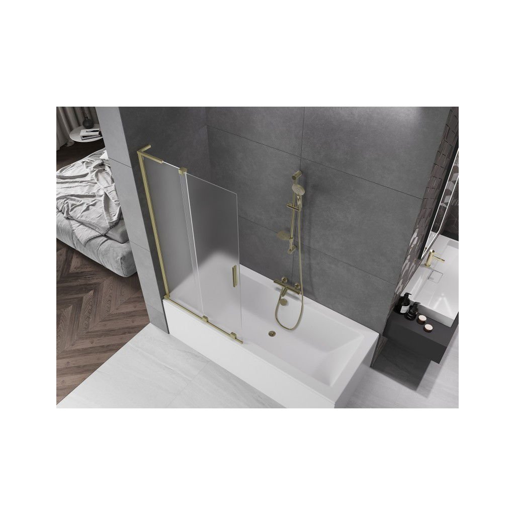 Mexen Velar L, 2-krídlová posuvná vaňová zástena 95 x 150 cm, 8mm sklo námraza, zlatá matná, 896-095-003-31-55