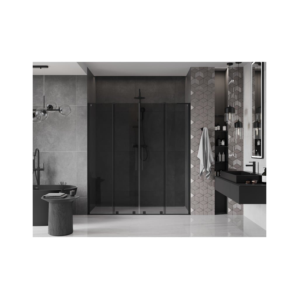 Mexen Velar L Duo, posuvné sprchové dvere do otvoru 180 cm, 8mm šedé sklo, čierna matná, 871-180-003-42-70