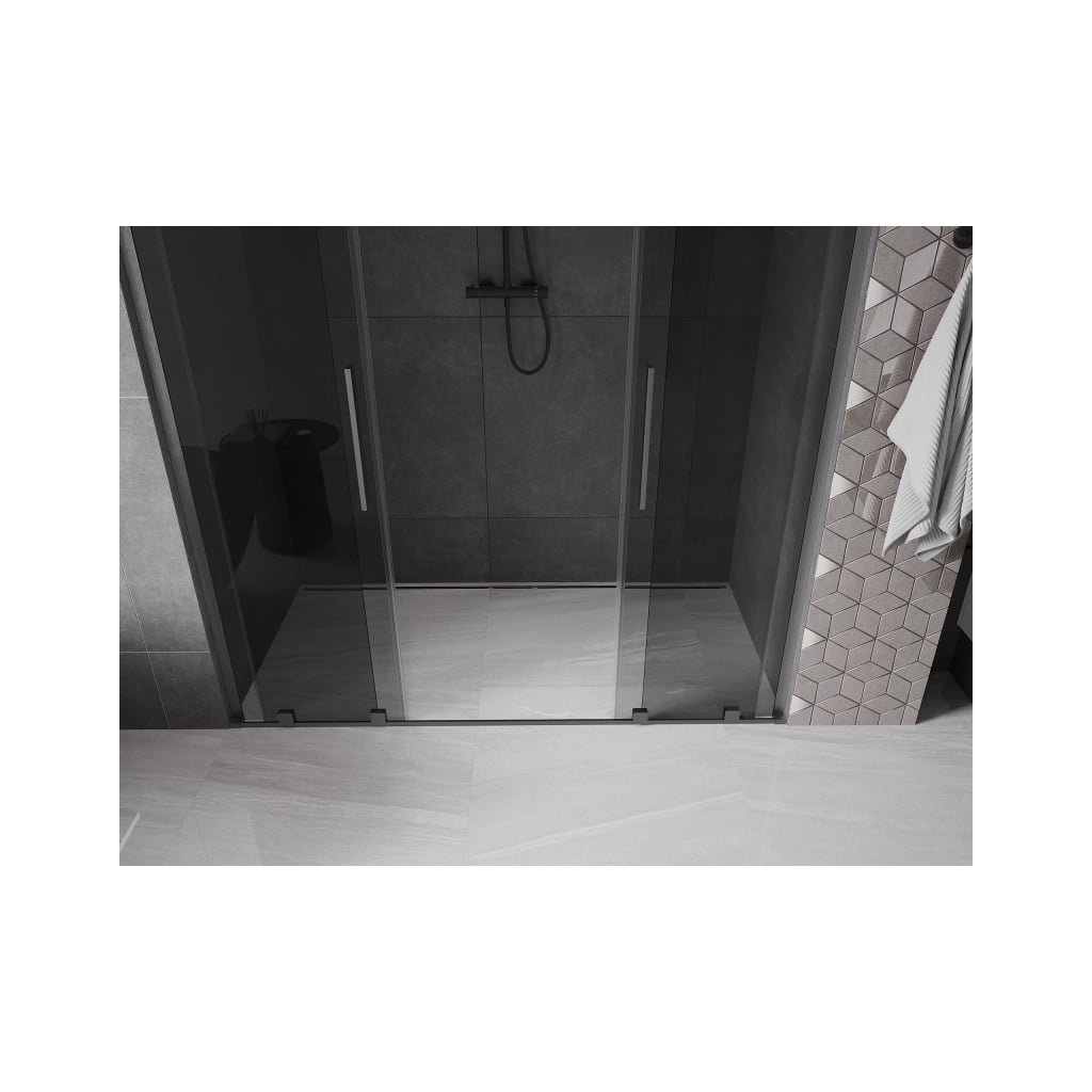 Mexen Velar L Duo, posuvné sprchové dvere do otvoru 180 cm, 8mm šedé sklo, grafit brúsený, 871-180-003-42-66