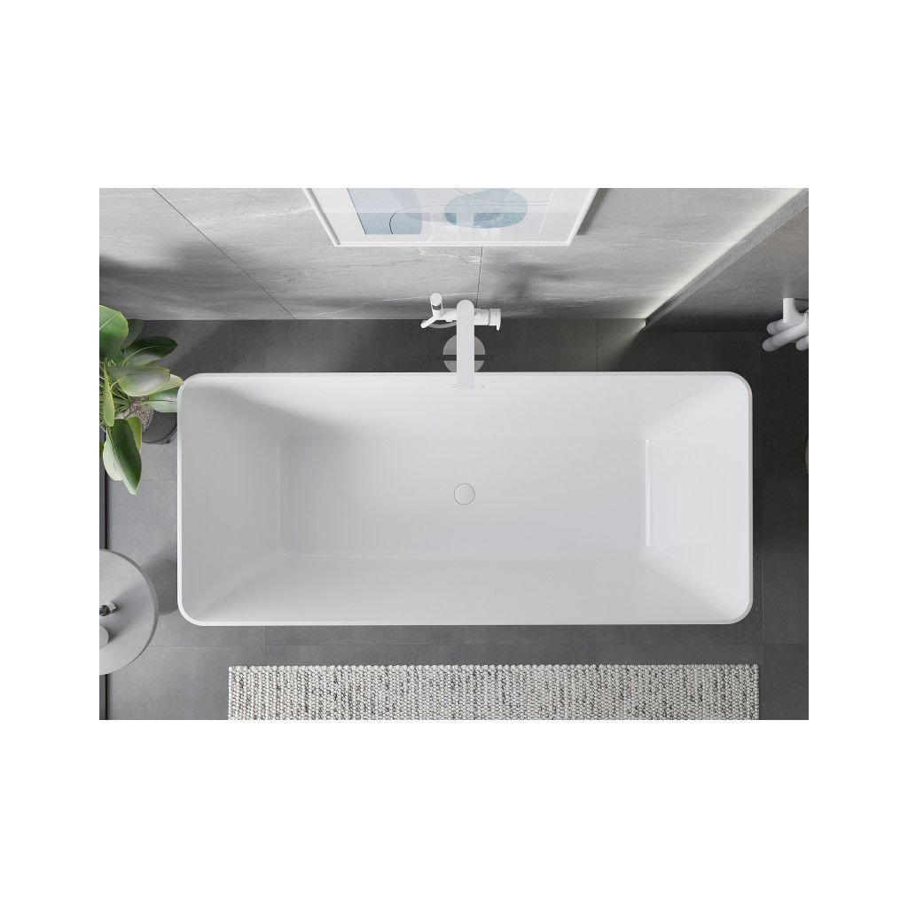 Mexen Velo Slim, voľne stojaca vaňa 170 × 75 cm, biela lesklá, biely prepad, 52811707500-20