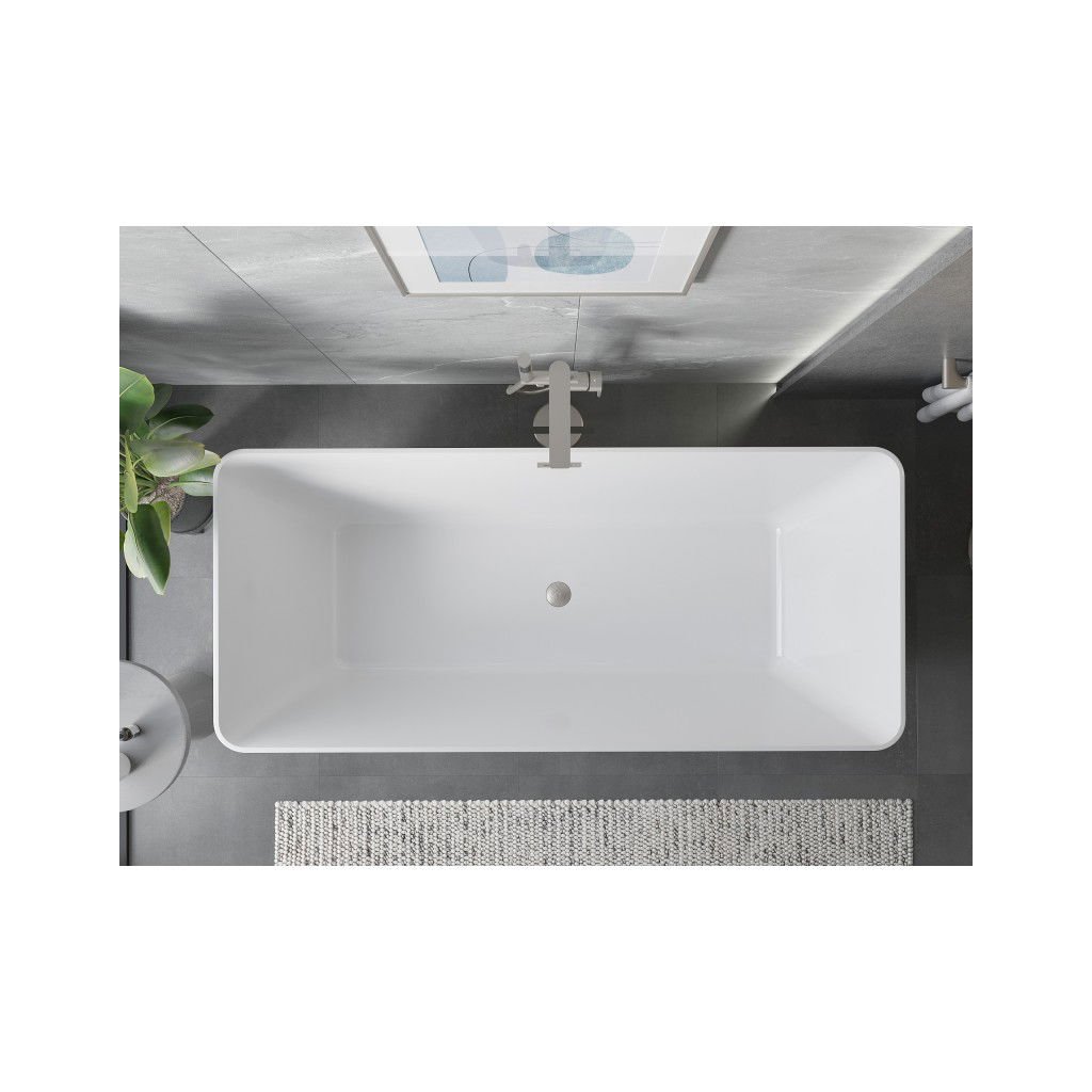 Mexen Velo Slim, voľne stojaca vaňa 170 × 75 cm, biela lesklá, oceľový prepad, 52811707500-97