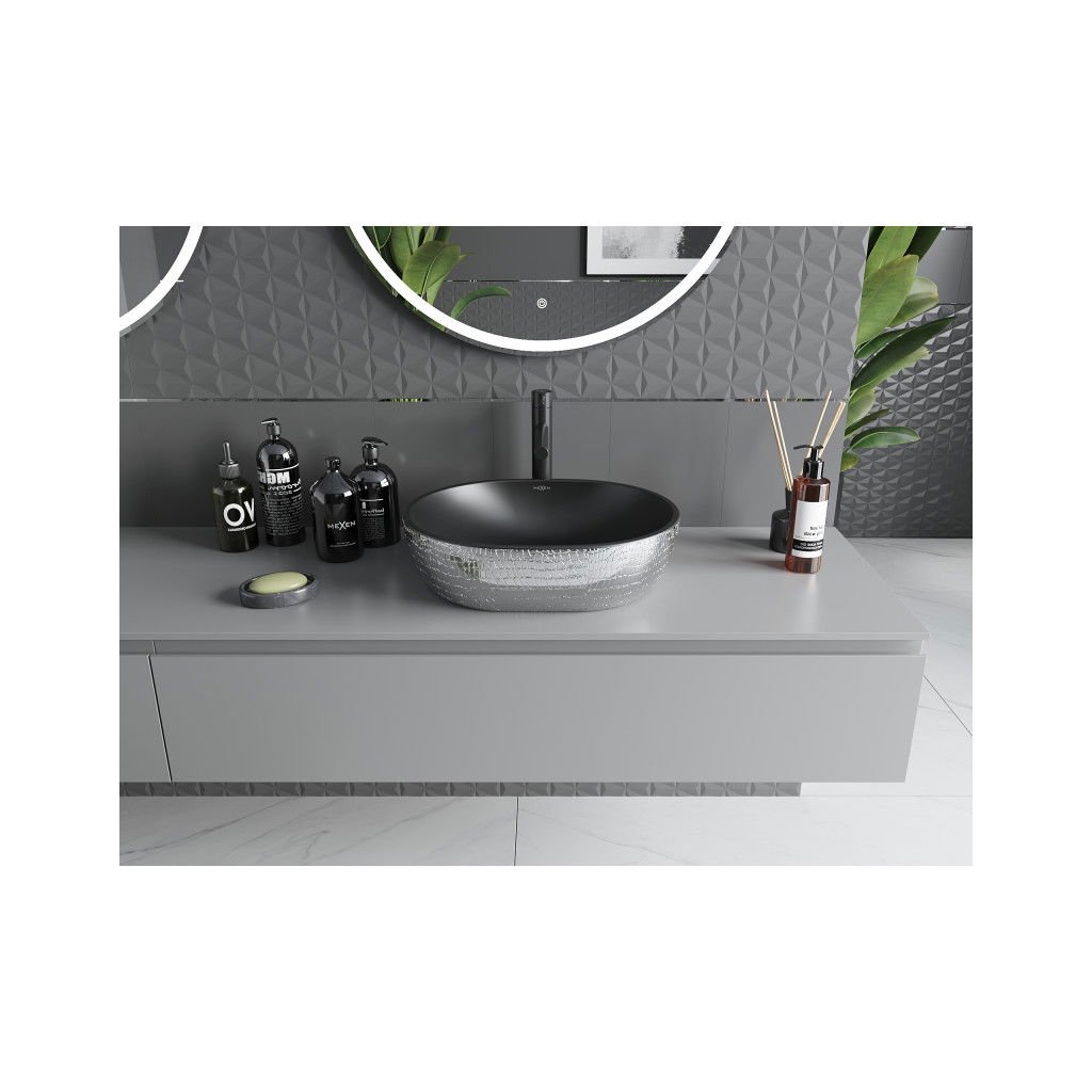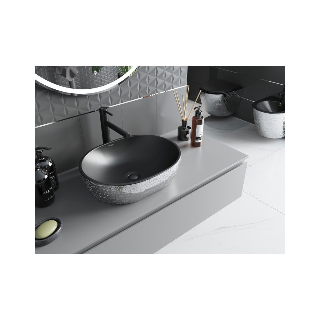 Mexen Viki, umývadlo na dosku 48x35x14 cm, čierna matná-strieborný vzor, 21054872