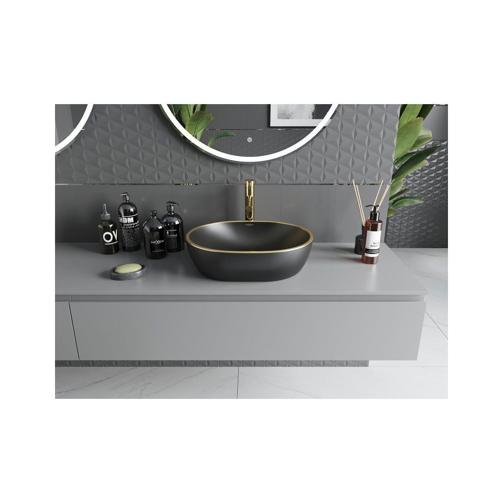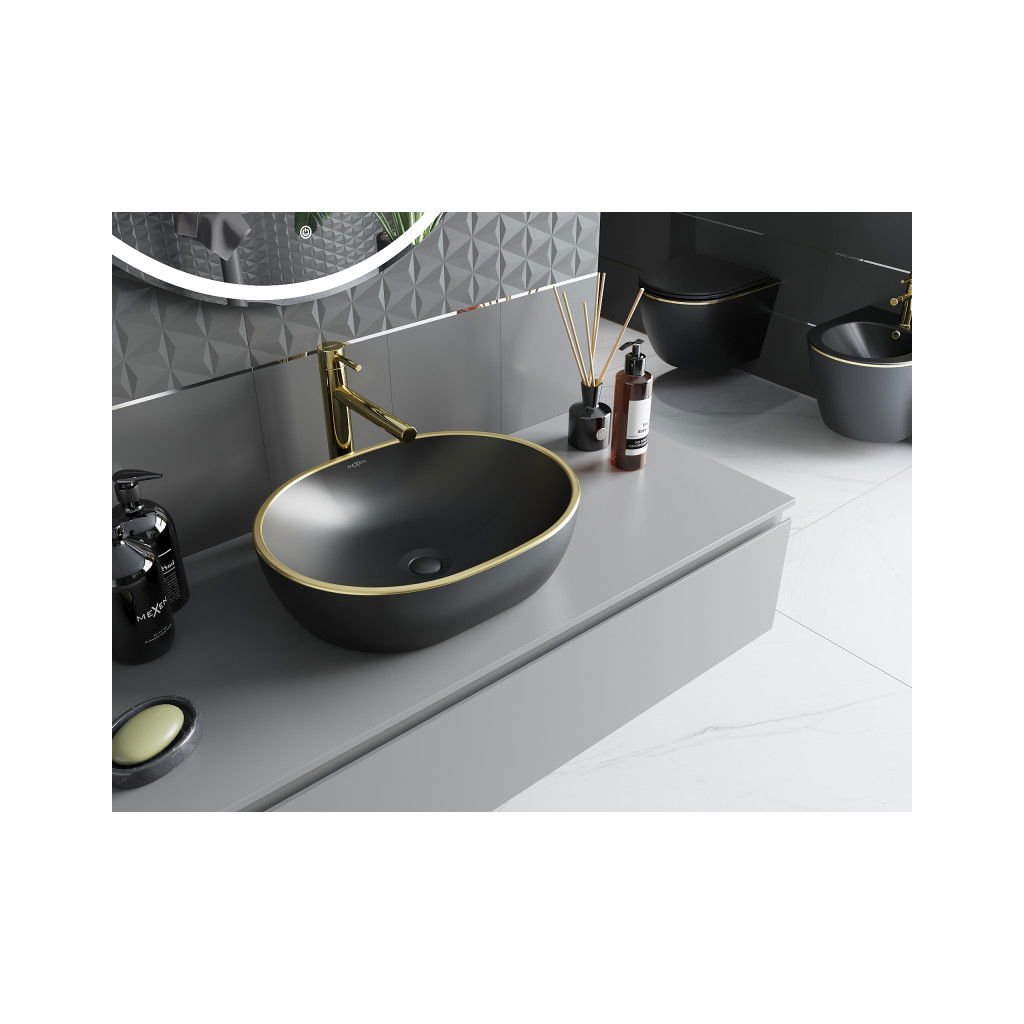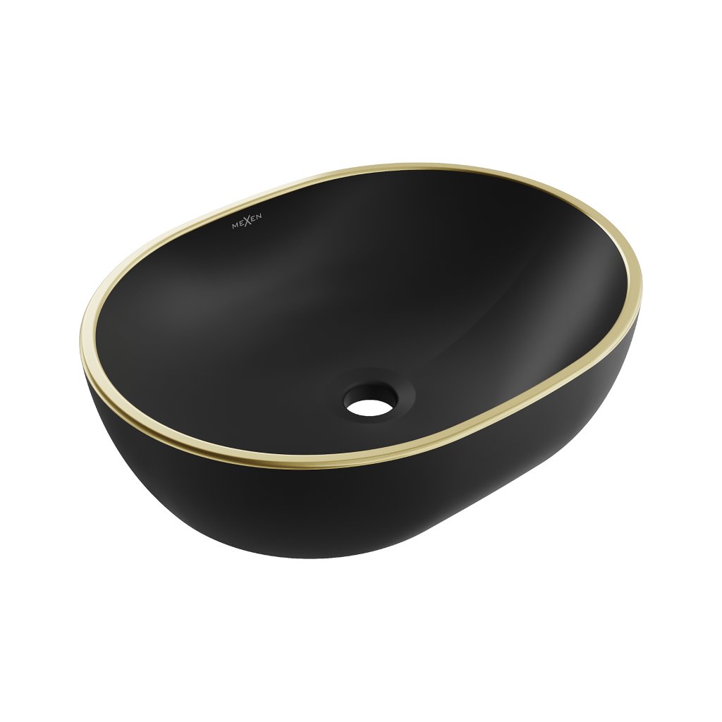 Mexen Viki, umývadlo na dosku 48x35x14 cm, čierna matná-zlatý okraj, 21054875