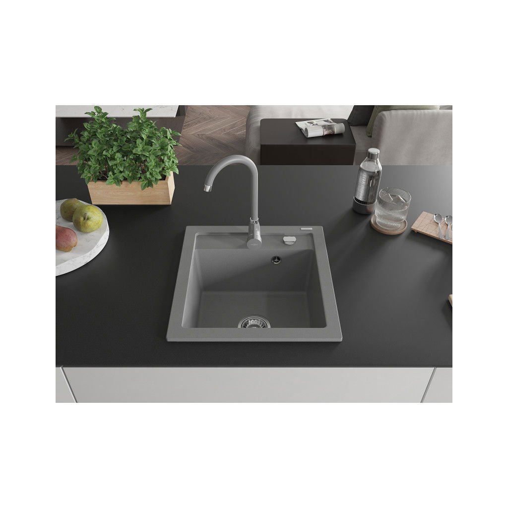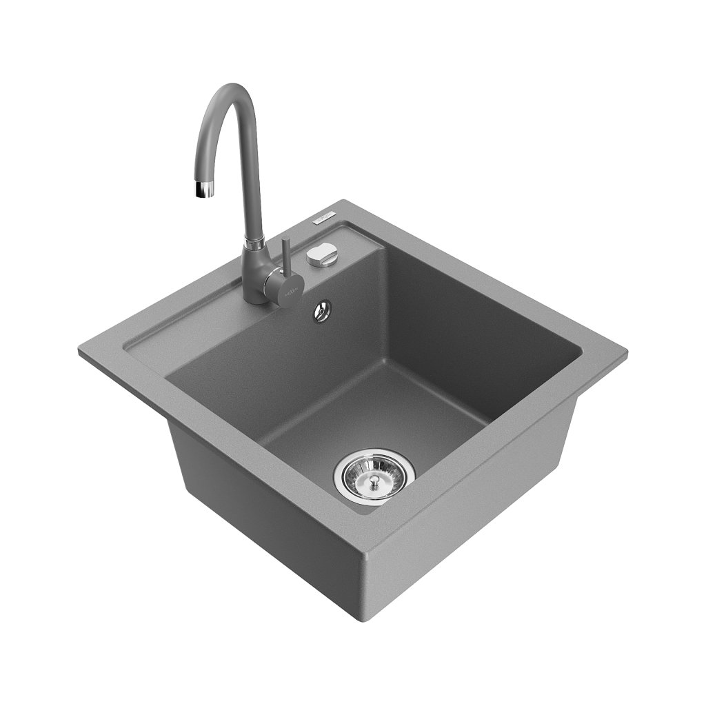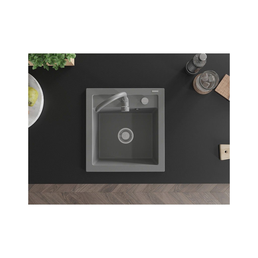 Mexen Vito, 1-komorový granitový drez a kuchynská batéria Telma, šedá, 6503-71-670200-71