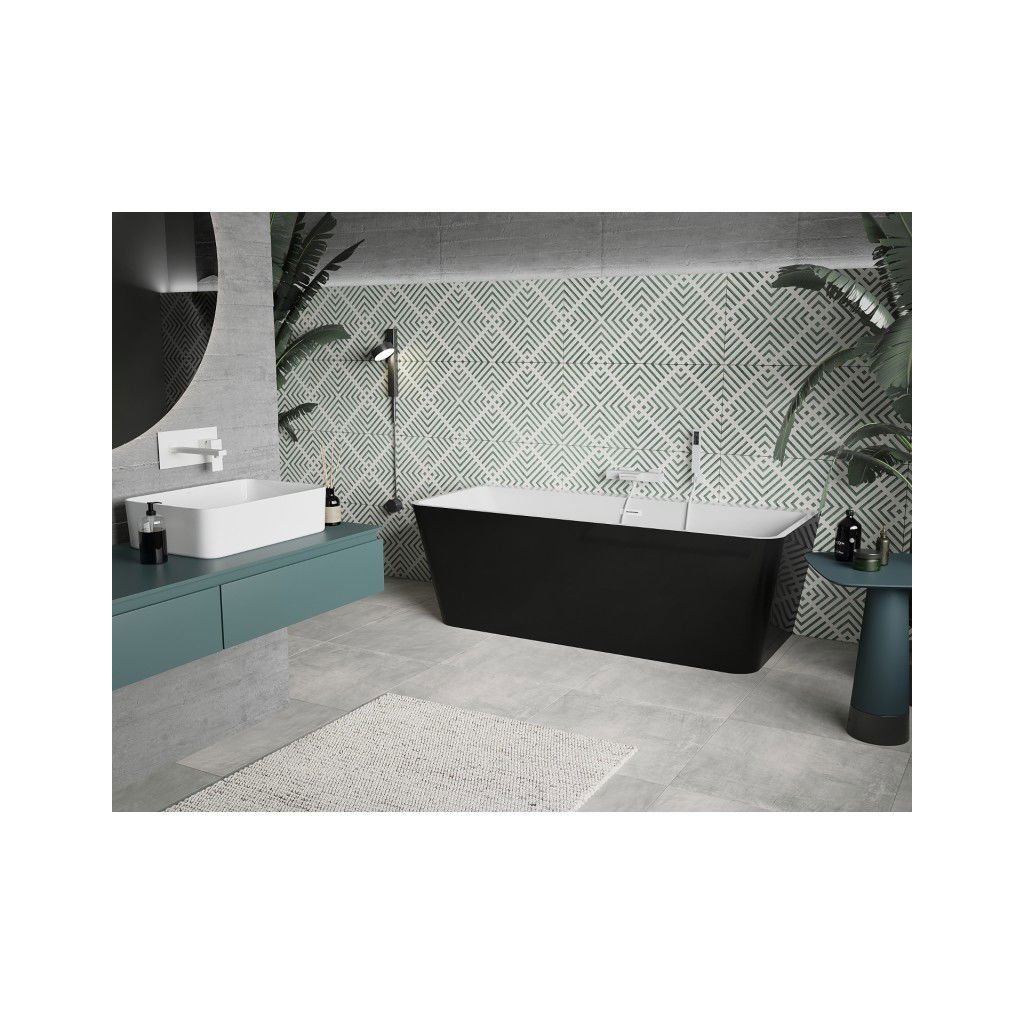 Mexen Volta, voľne stojaca nástenna vaňa 150 x 75 cm, biela-čierna, biely prepad, 51131507575-20