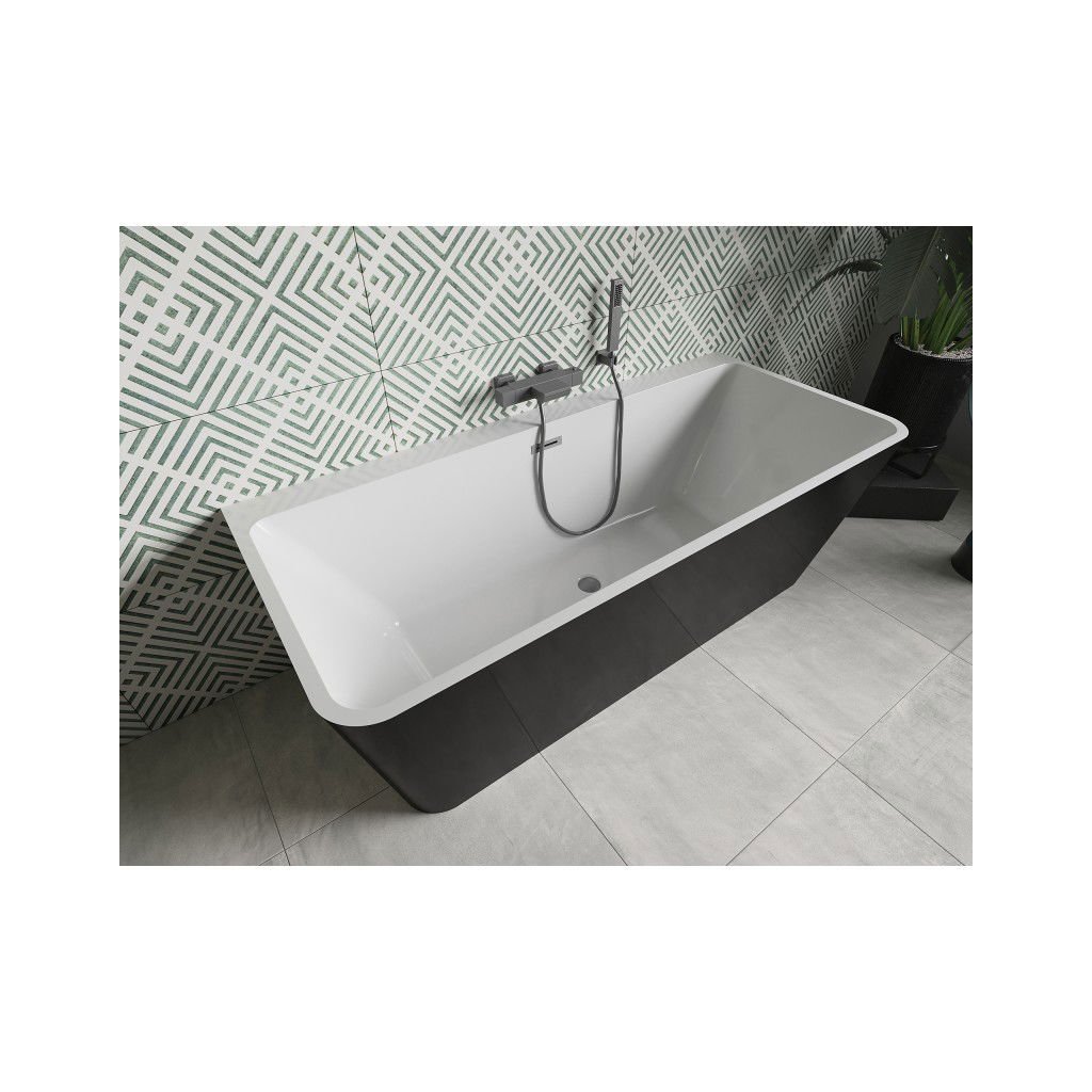 Mexen Volta, voľne stojaca nástenna vaňa 150 x 75 cm, biela-čierna, brúsený grafit prepad, 51131507575-95
