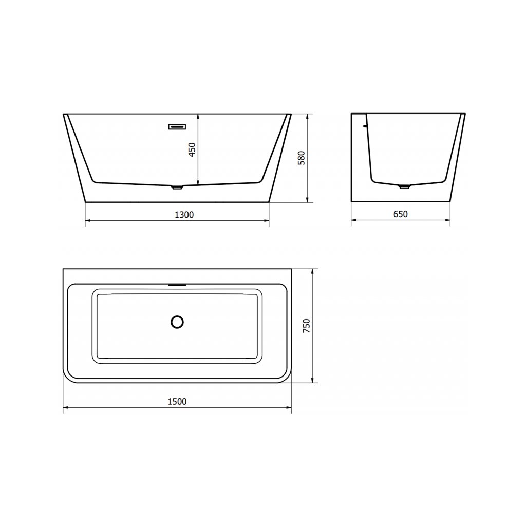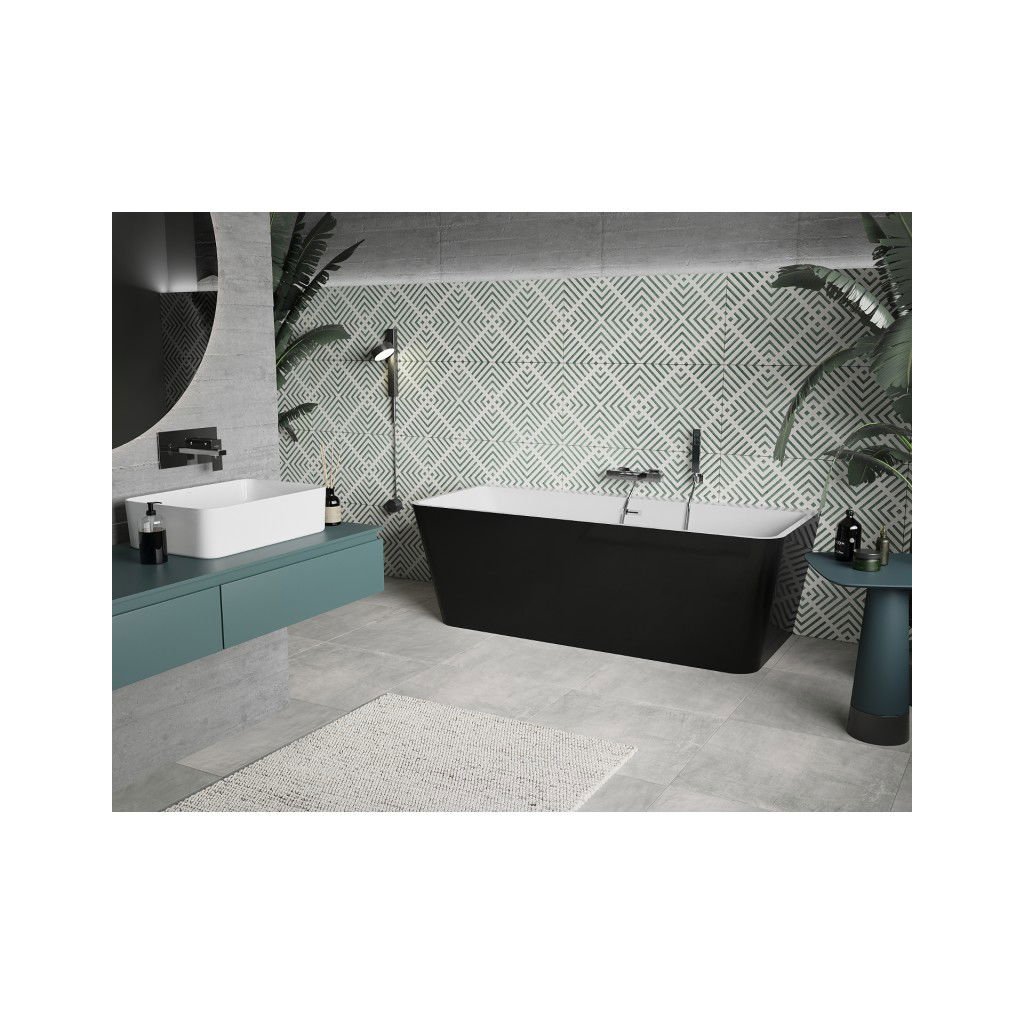 Mexen Volta, voľne stojaca nástenna vaňa 150 x 75 cm, biela-čierna, chrómový prepad, 51131507575-01