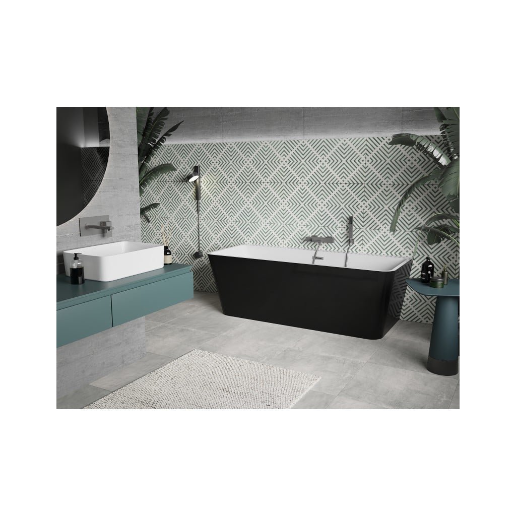 Mexen Volta, voľne stojaca nástenna vaňa 170 x 75 cm, biela-čierna, brúsený grafit prepad, 51131707575-95