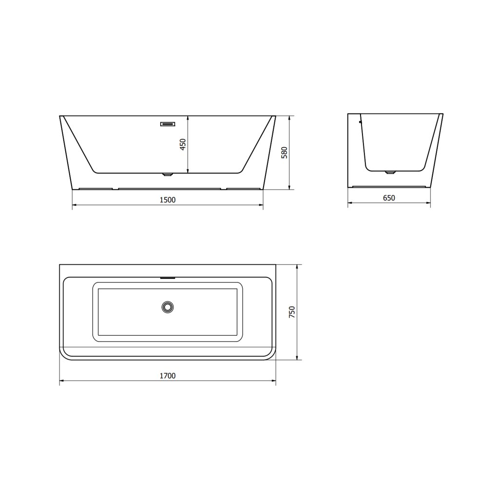 Mexen Volta, voľne stojaca nástenna vaňa 170 x 75 cm, biela-čierna, zlatý matný prepad, 51131707575-55