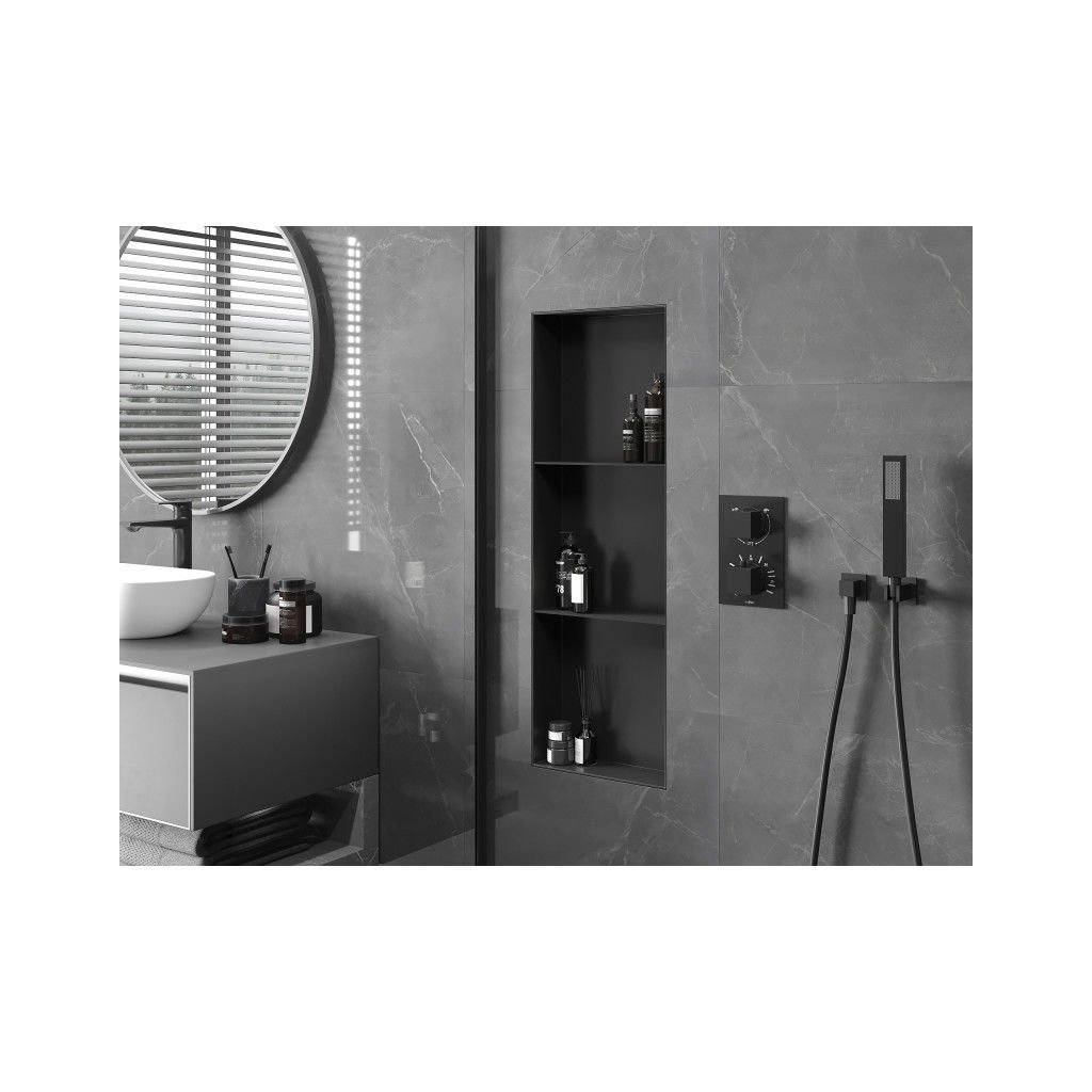 Mexen X-Wall-NR, polička na zapustenie pod obklad bez goliera 90 x 30 cm, čierna matná, 1971903010S