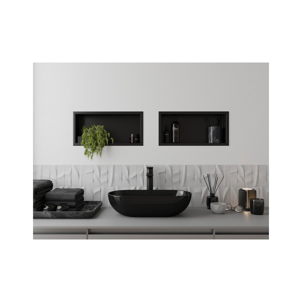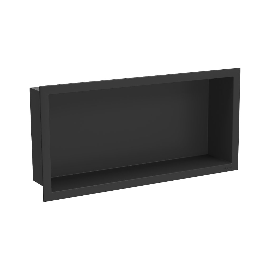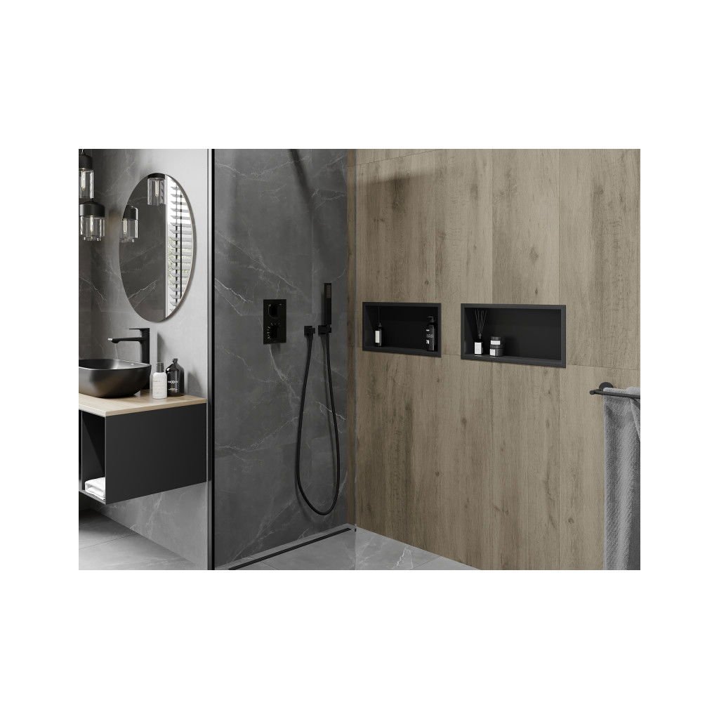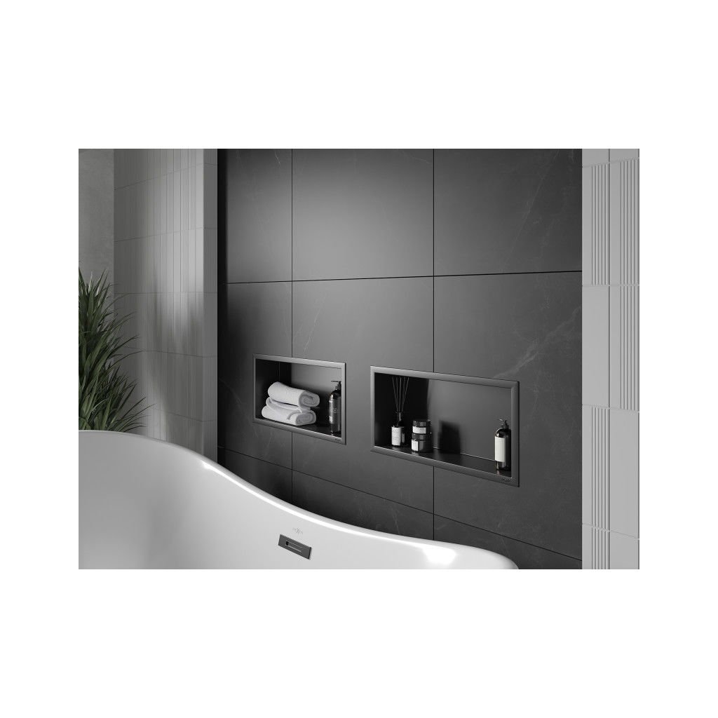 Mexen X-Wall-R, polička na zapustenie na obklad s golierom 45 x 20 cm, čierna matná, 1970452010