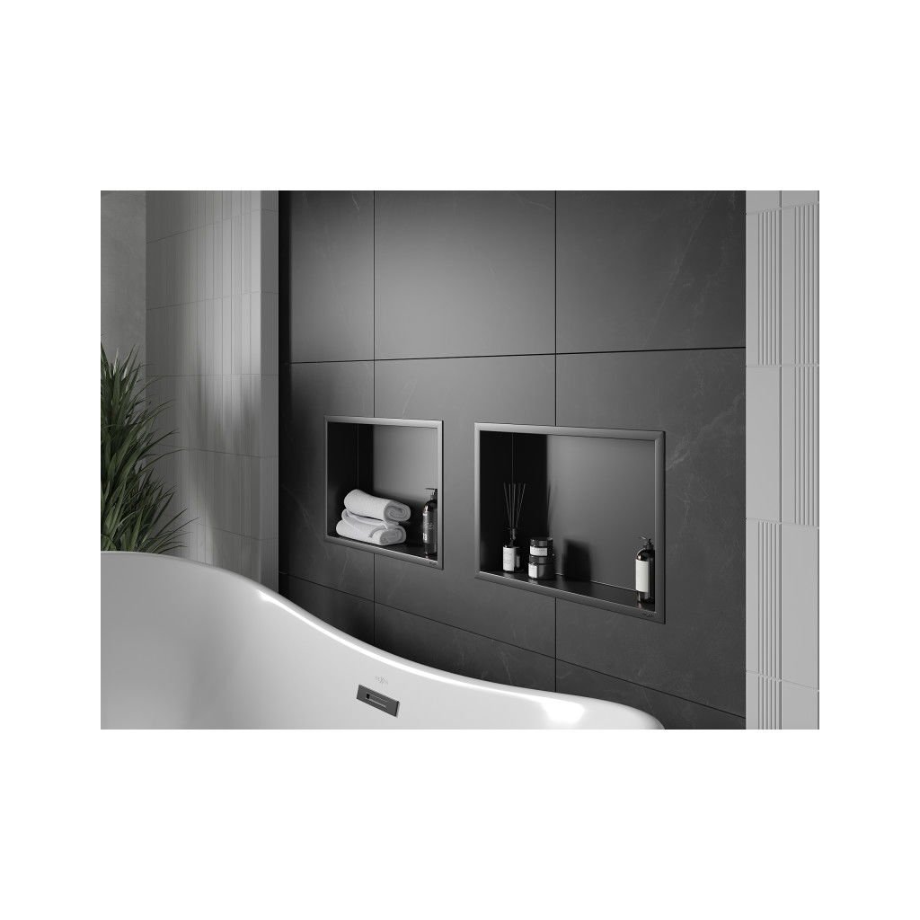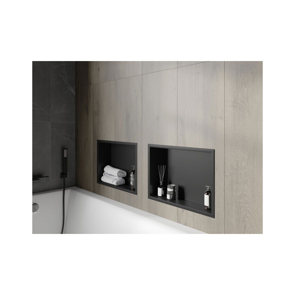 Mexen X-Wall-R, polička na zapustenie na obklad s golierom 45 x 30 cm, čierna matná, 1970453010