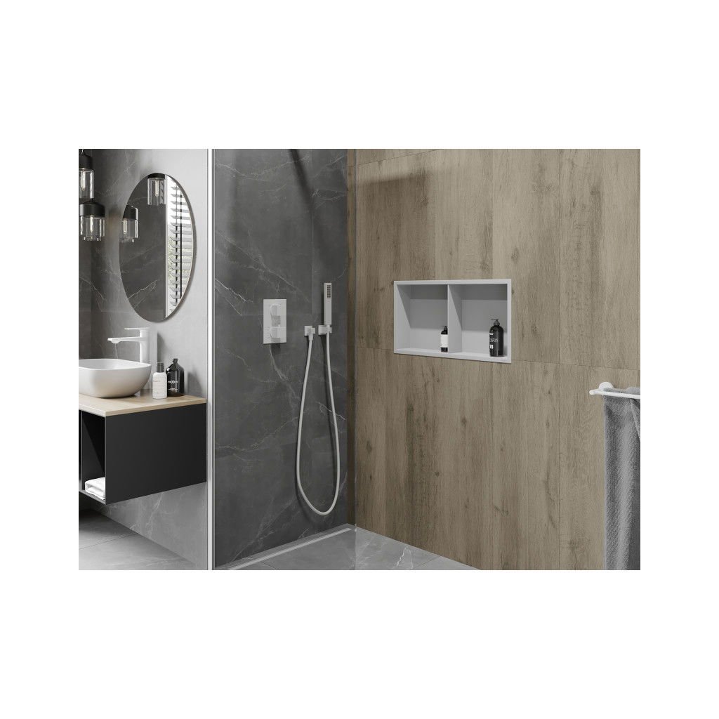 Mexen X-Wall-R, polička na zapustenie na obklad s golierom 60 x 30 cm, biela, 1920603010S