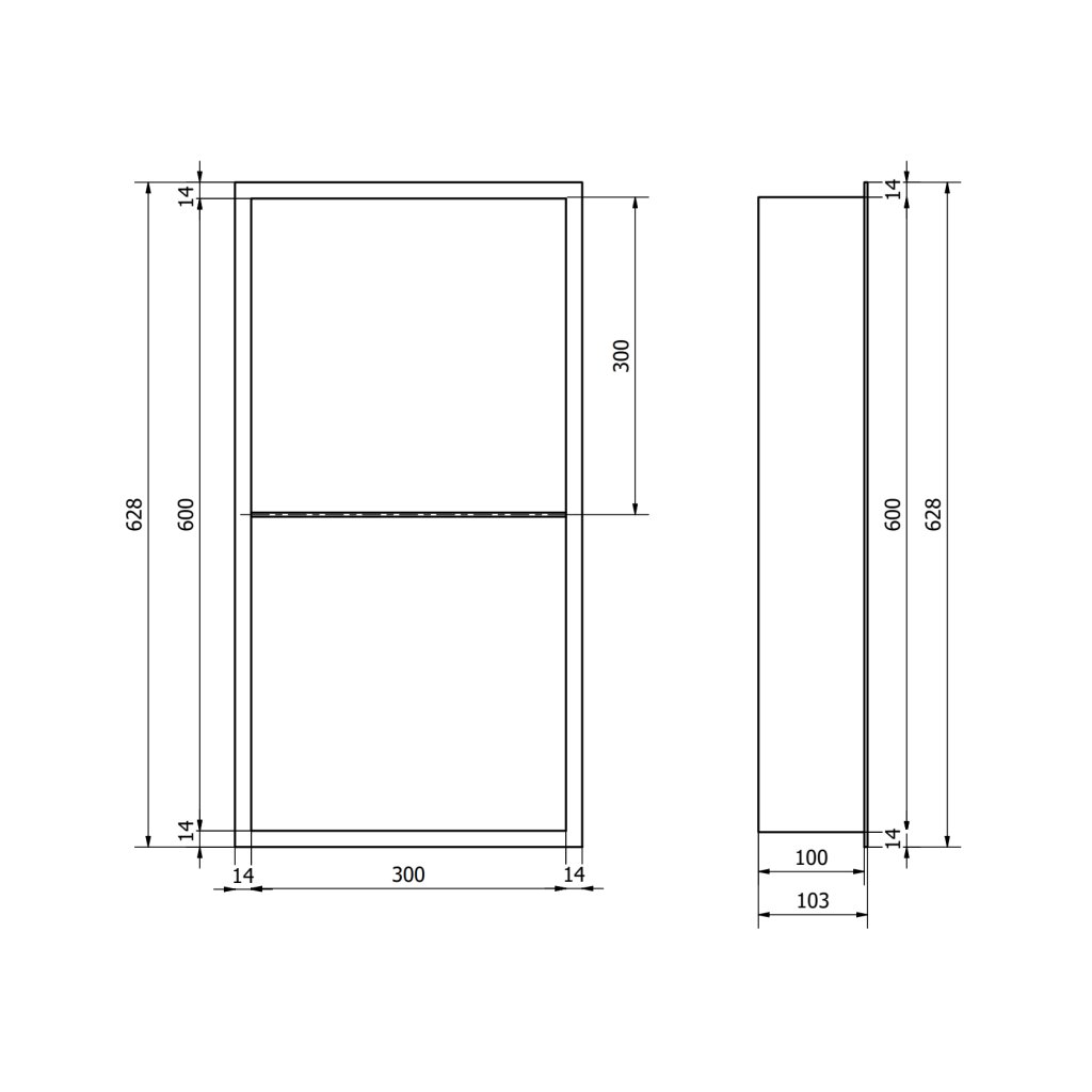 Mexen X-Wall-R, polička na zapustenie na obklad s golierom 60 x 30 cm, čierna matná, 1970603010S