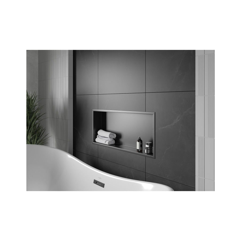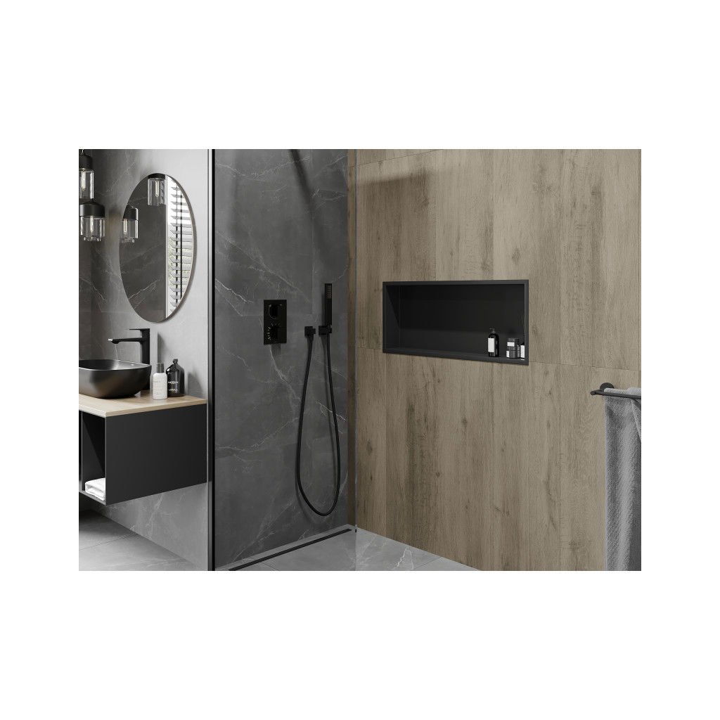 Mexen X-Wall-R, polička na zapustenie na obklad s golierom 75 x 30 cm, čierna matná, 1970753010