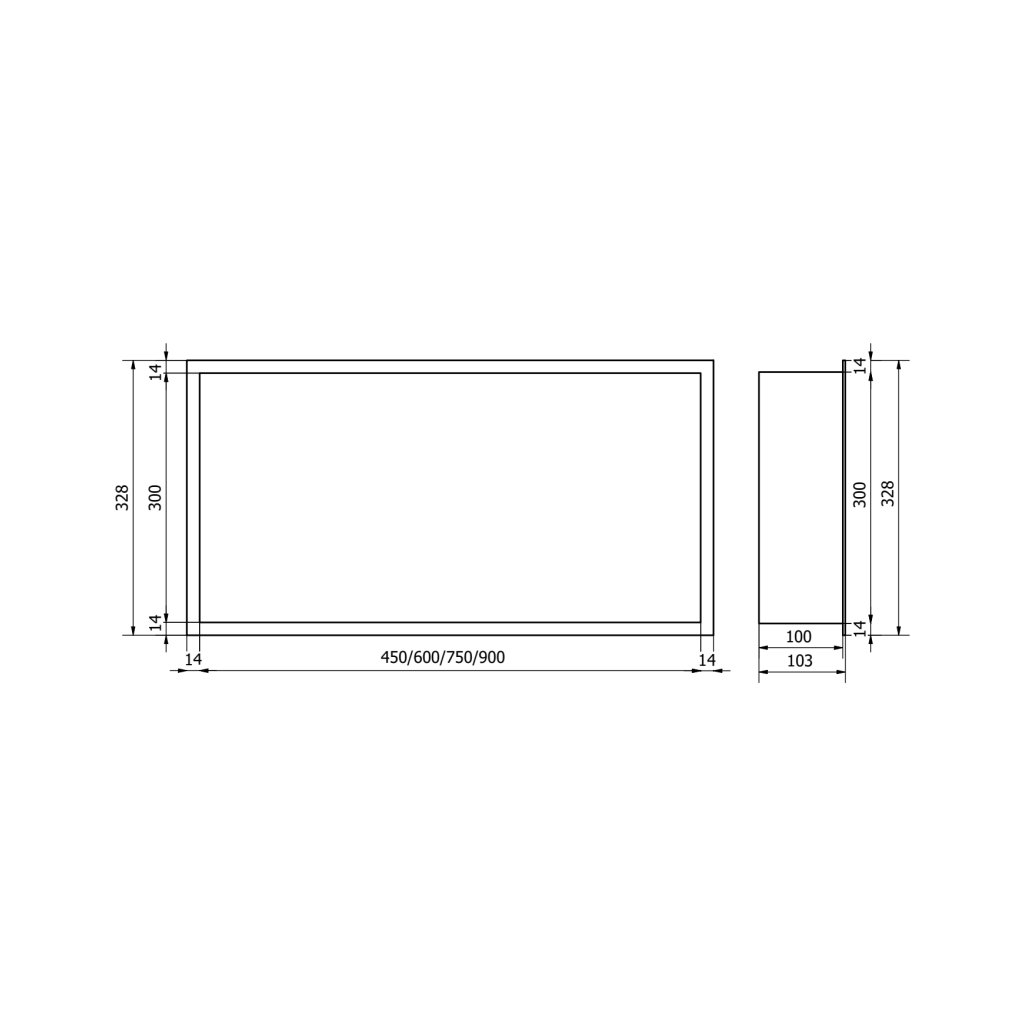 Mexen X-Wall-R, polička na zapustenie na obklad s golierom 75 x 30 cm, oceľová, 1910753010