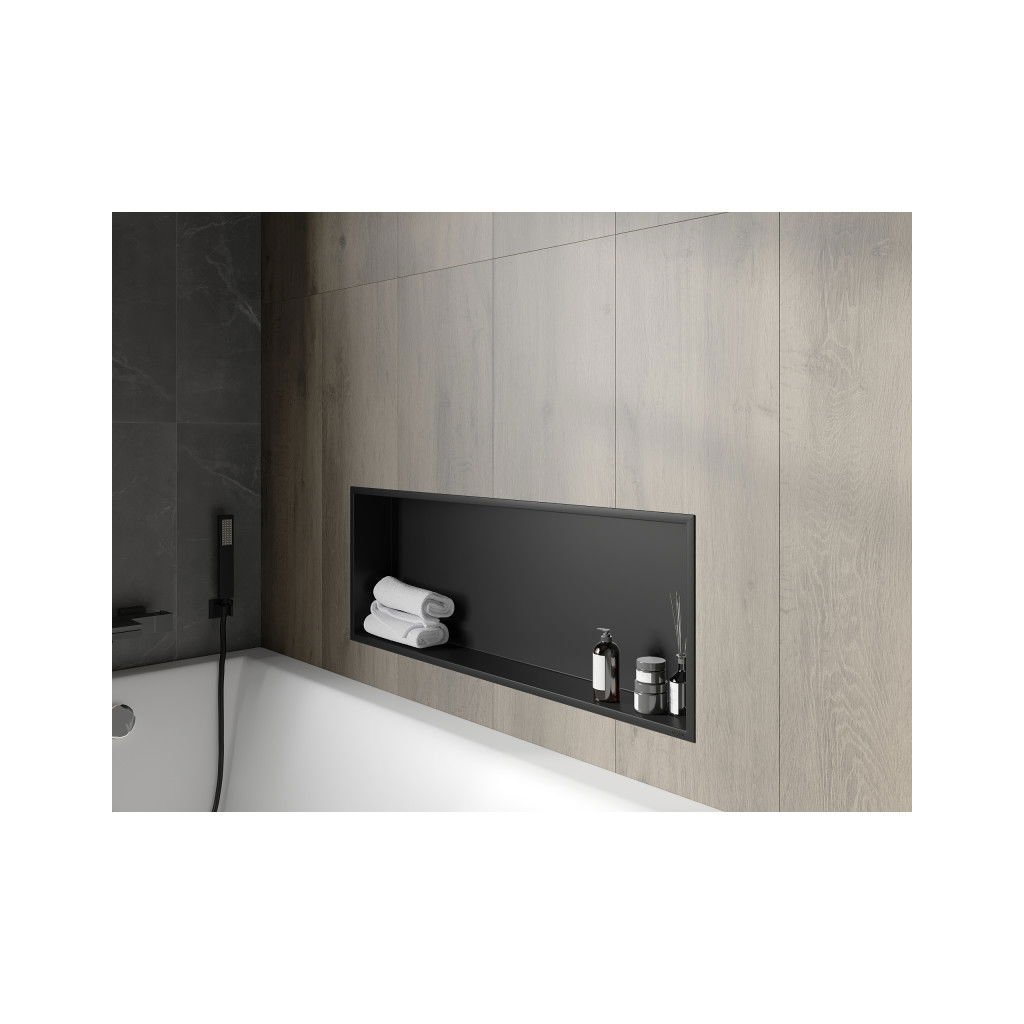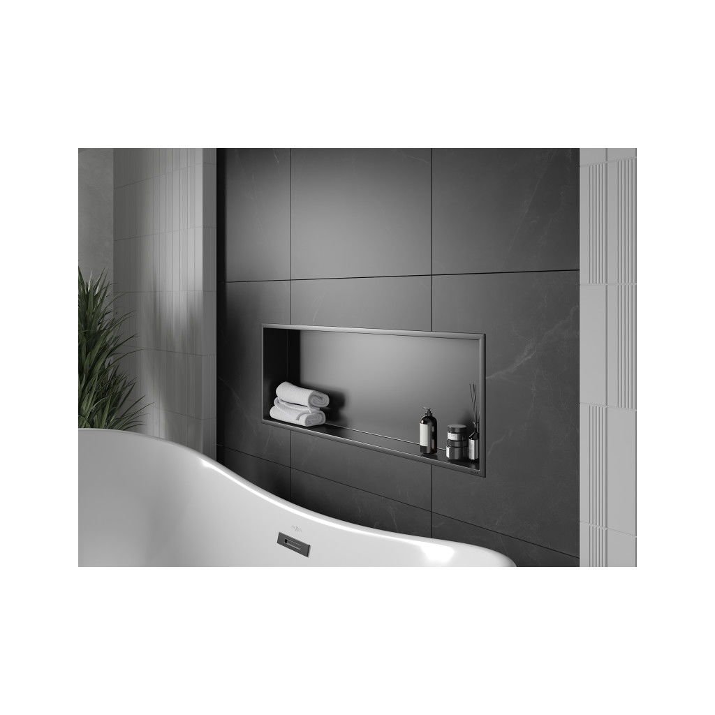 Mexen X-Wall-R, polička na zapustenie na obklad s golierom 90 x 30 cm, čierna matná, 1970903010
