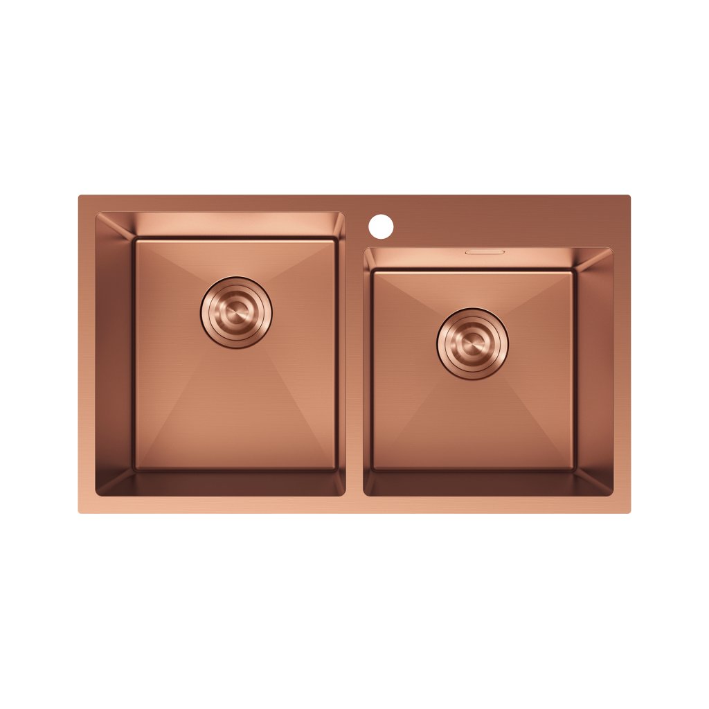 Mexen Xorin, 2-komorový nerezový drez 780 x 450 mm, brúsená meď, 6441782000-65