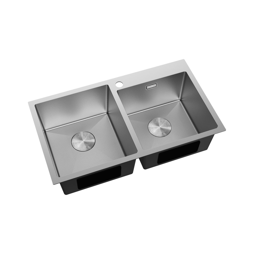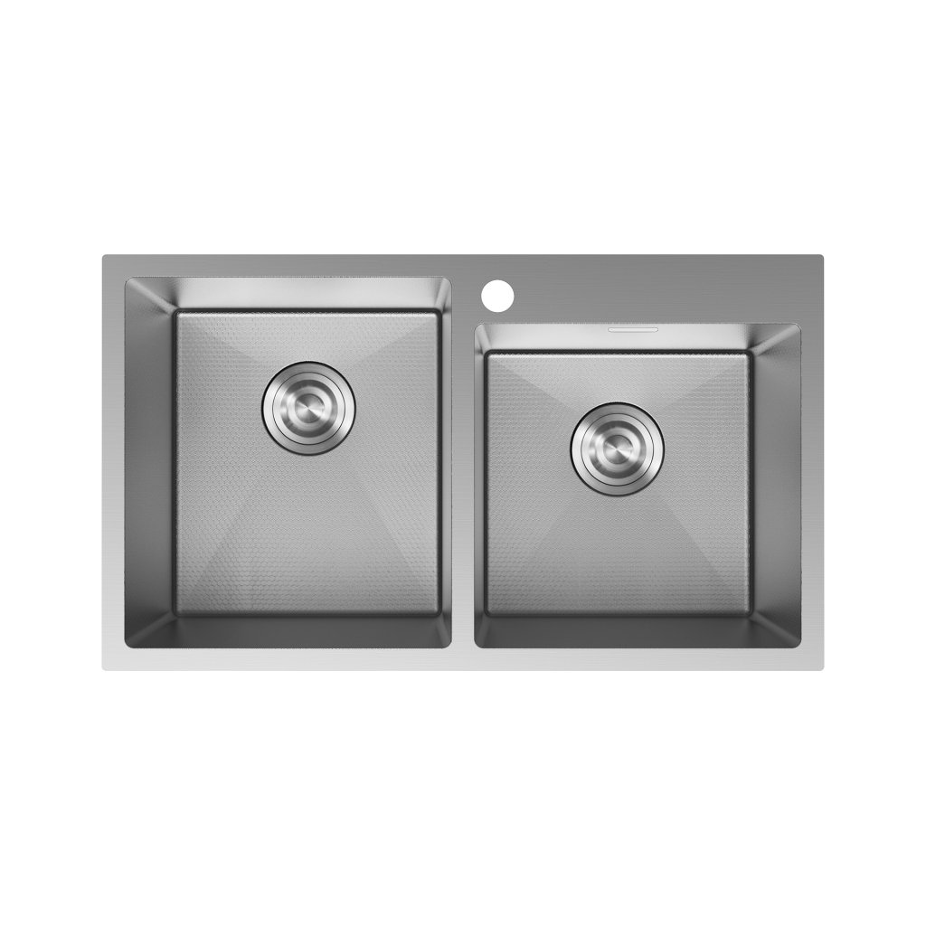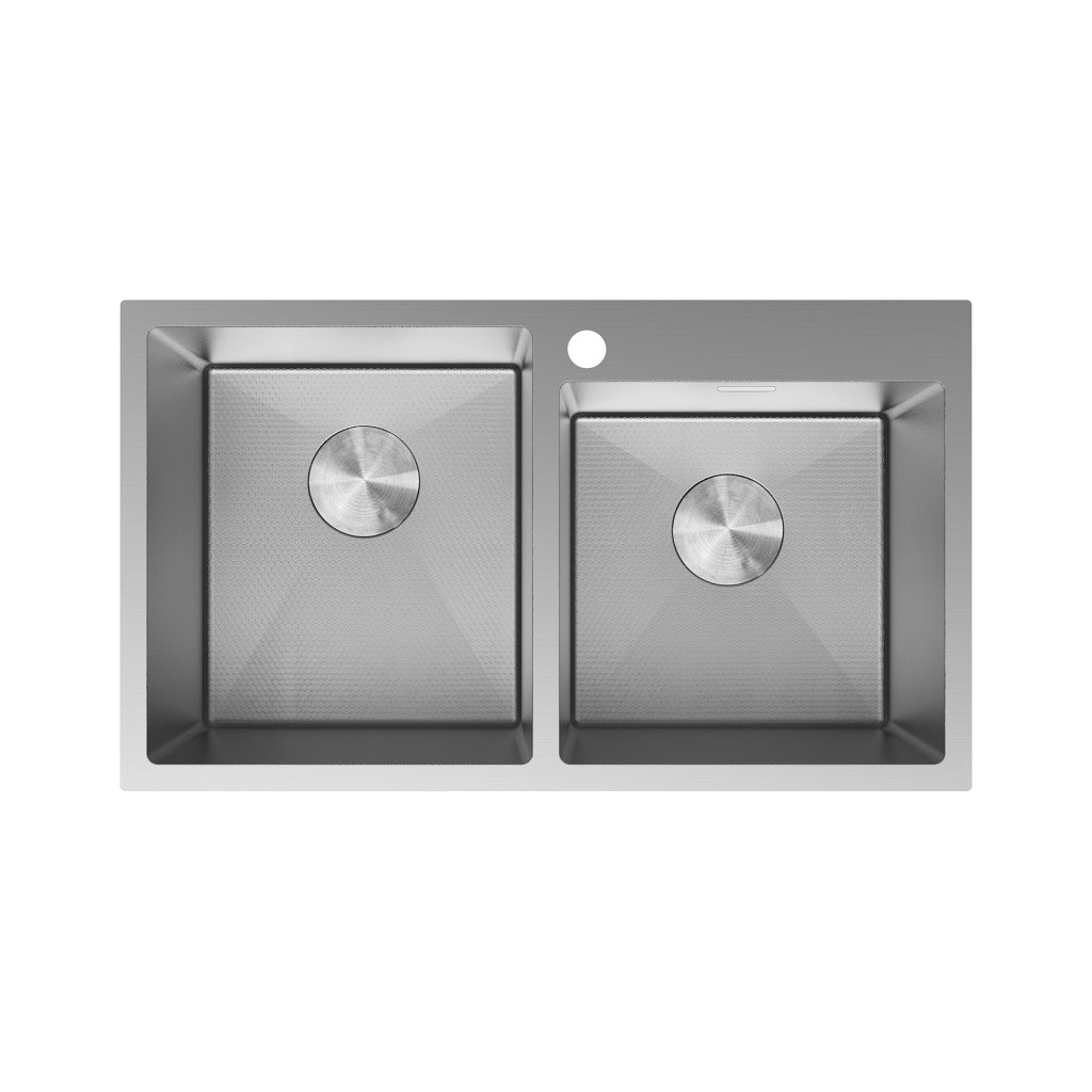 Mexen Xorin, 2-komorový nerezový drez 780 x 450 mm, brúsená oceľ, vzor voština, 6441782000-01HC