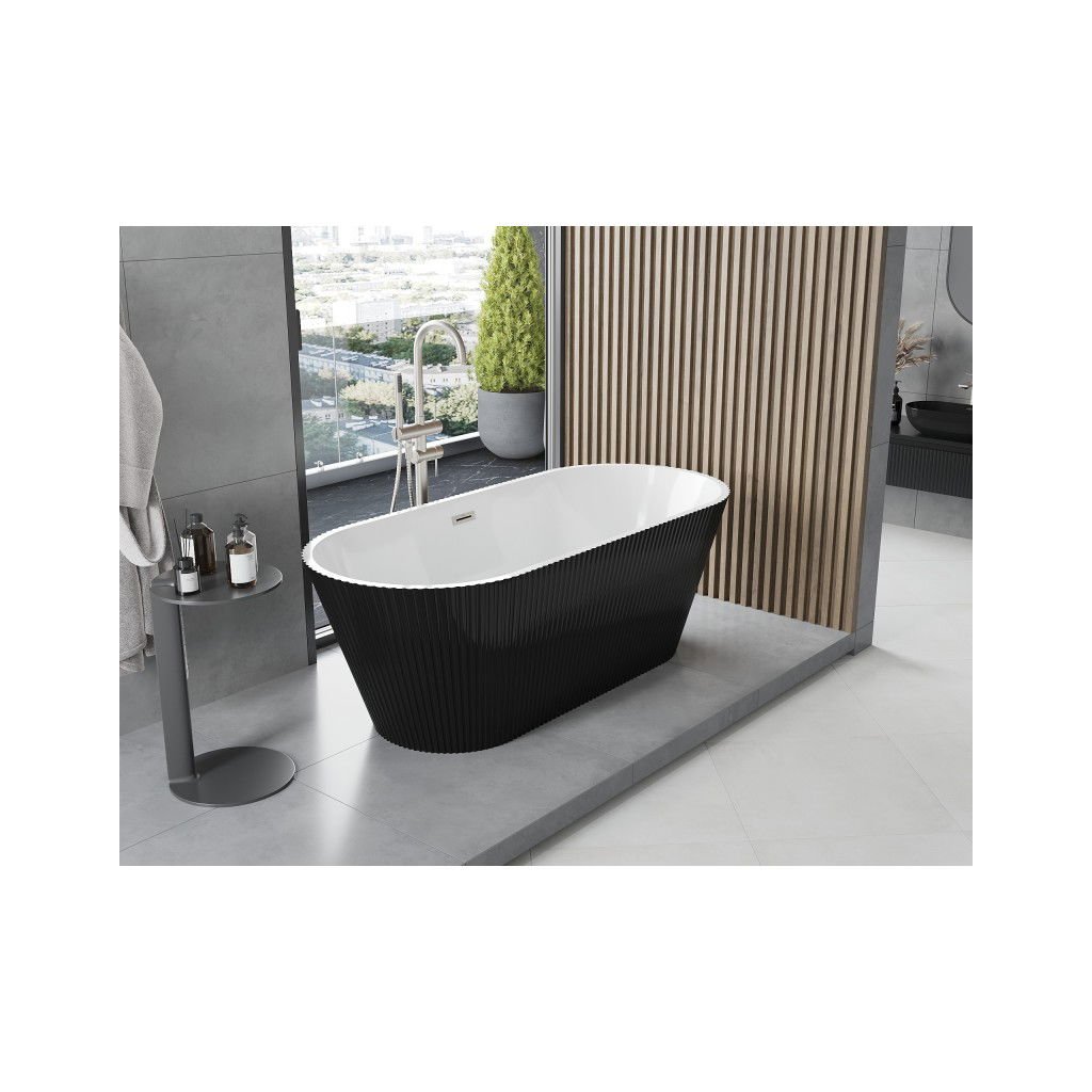 Mexen Yara, voľne stojaca ryhovaná vaňa 170 x 75 cm, biela-čierna, oceľový prepad, 52861707575-97
