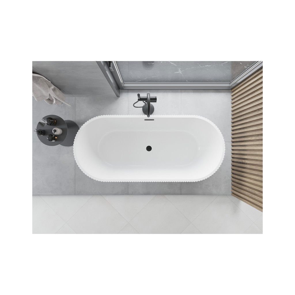 Mexen Yara, voľne stojaca ryhovaná vaňa 170 x 75 cm, biela lesklá, čierny matný prepad, 52861707500-70