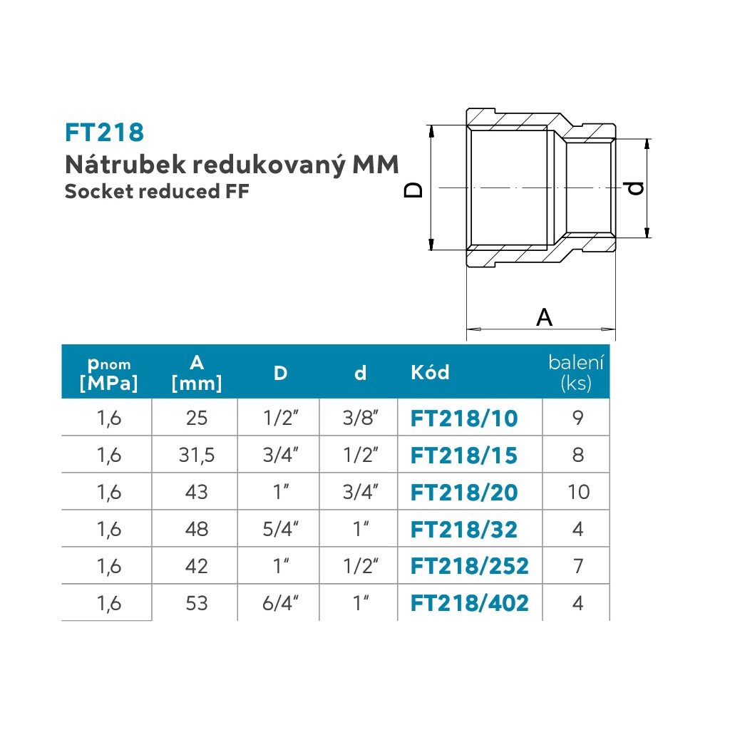 Nátrubek redukovaný 3/4"x1/2"Dodatočné parametre
