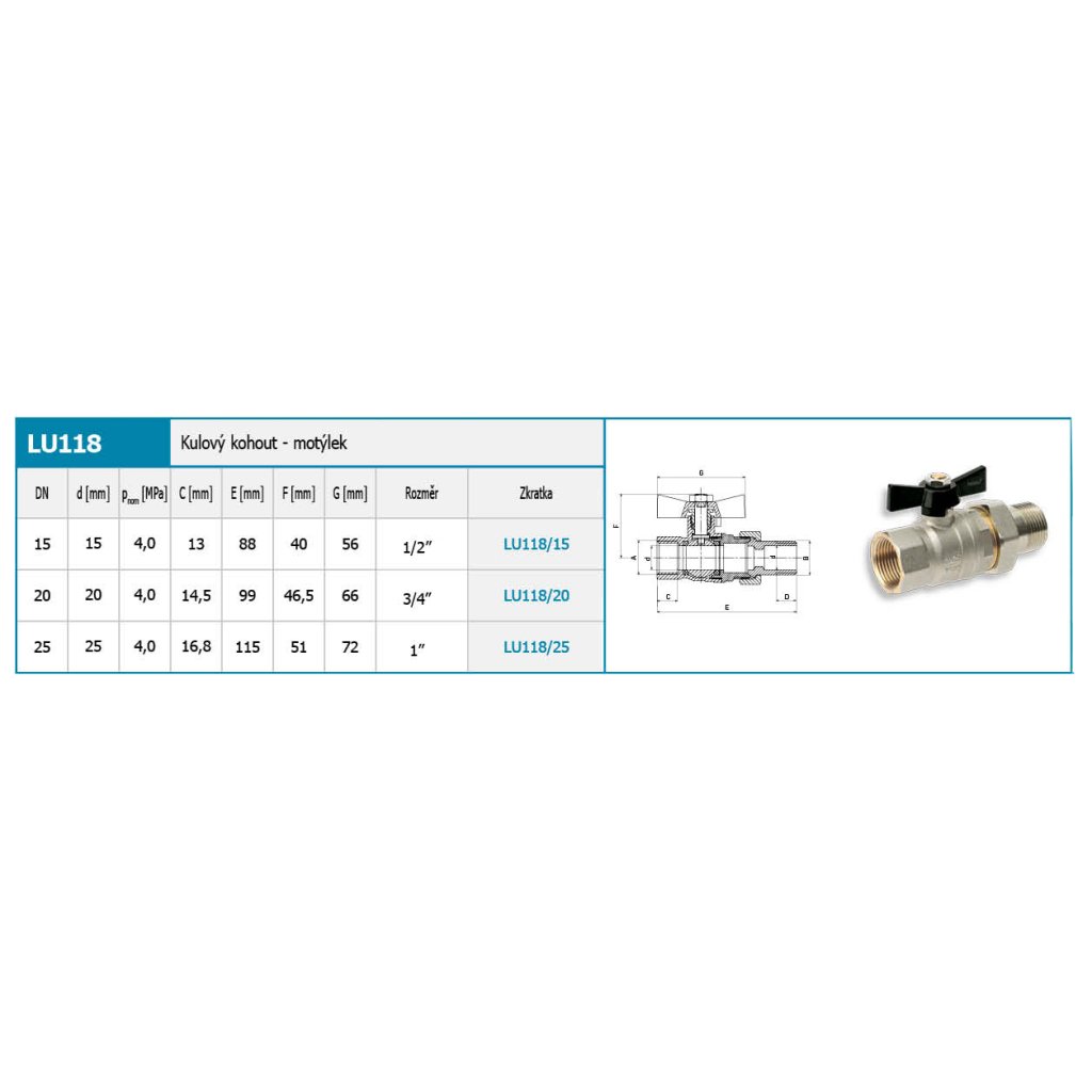 Luxusní plnoprůtočný kohout s motýlkem a šroubením ŠM 3/4"Dodatočné parametre
