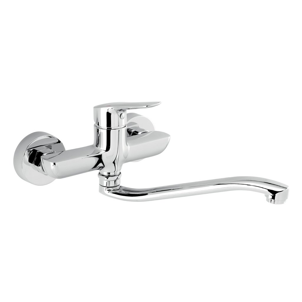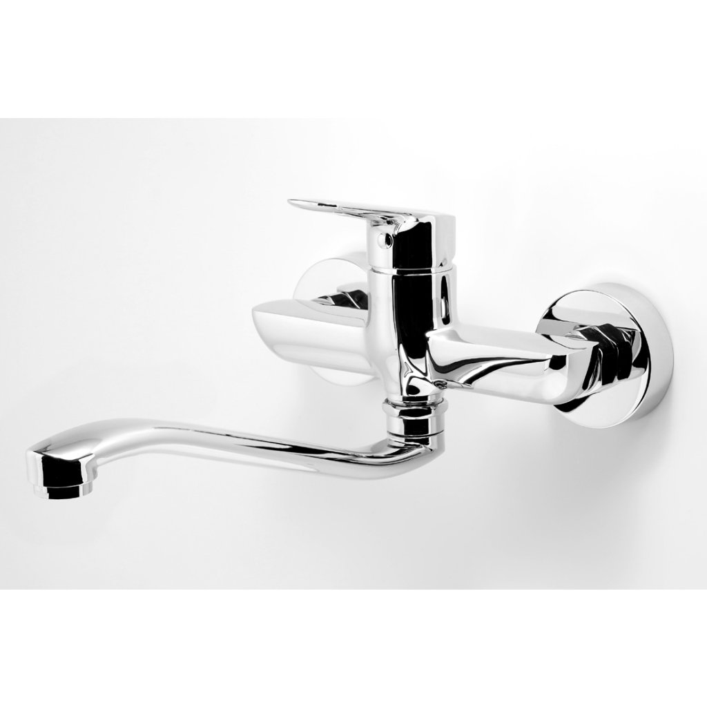 Kvalitná a odolná keramická kartuša KEROX 35 mm s predĺženou zárukou 7 rokov. Prvotriedne chrómové prevedenie. Nástenná umývadlová/drezová batéria s rozstupom 150 mm s plochým ramenom 250 mm.