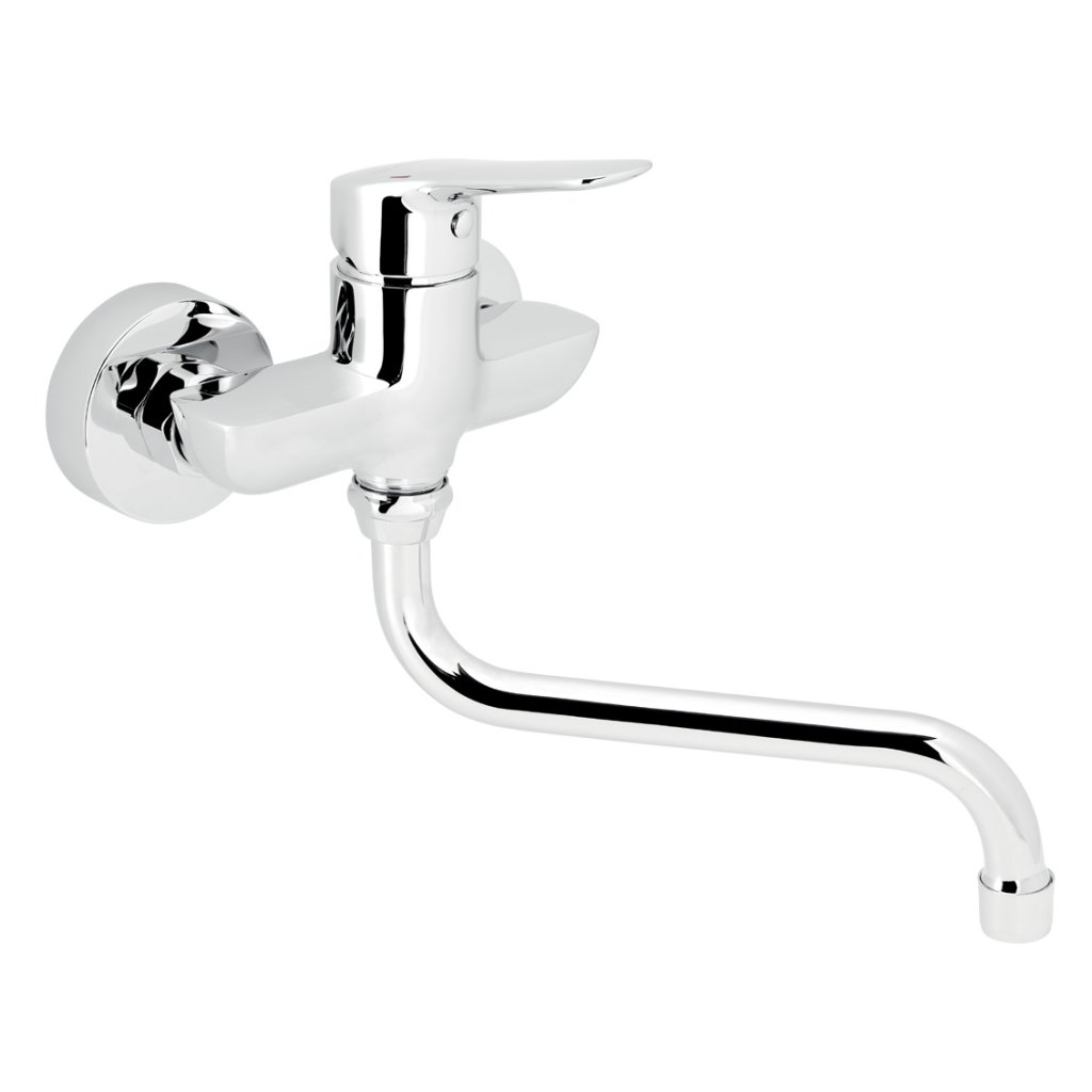 Kvalitní a odolná keramická kartuše KEROX 35 mm s prodlouženou zárukou 7 let. Prvotřídní chromové provedení. Nástěnná umyvadlová/dřezová baterie s roztečí 100 mm s S-ramenem 250 mm.