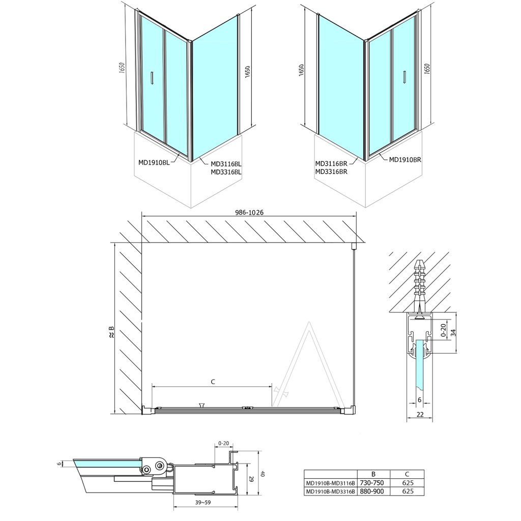 Polysan, DEEP BLACK obdĺžniková sprchová zástena 1000x900mm L/P varianta, číre sklo, MD1910B-02