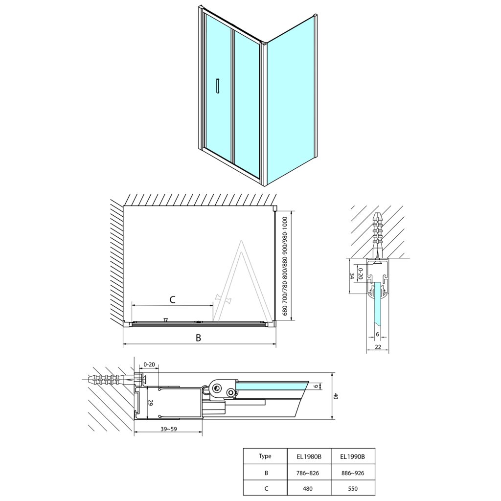 Polysan, EASY BLACK sprchové dvere skladacie 800mm, číre sklo, EL1980B