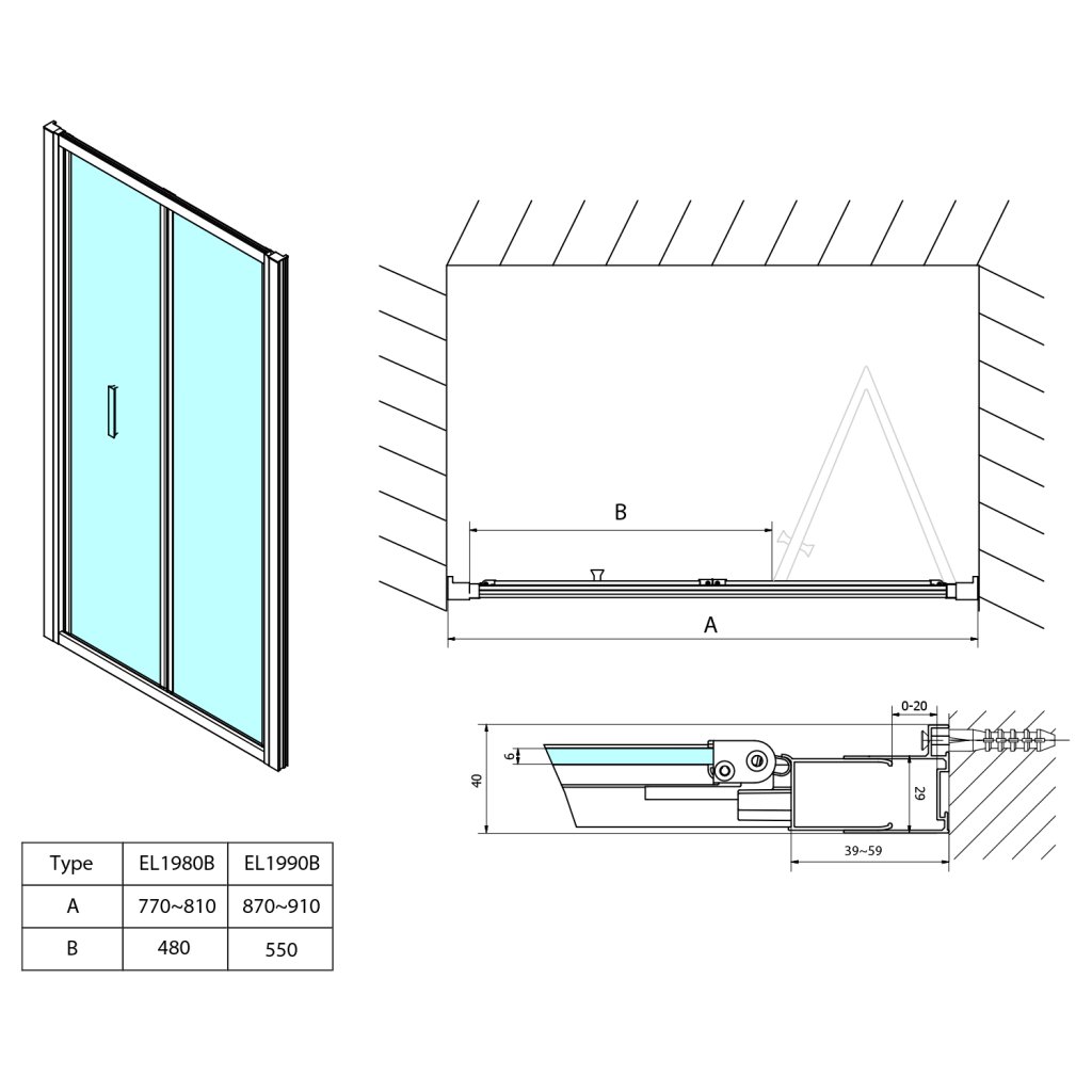 Polysan, EASY BLACK sprchové dvere skladacie 900mm, číre sklo, EL1990B