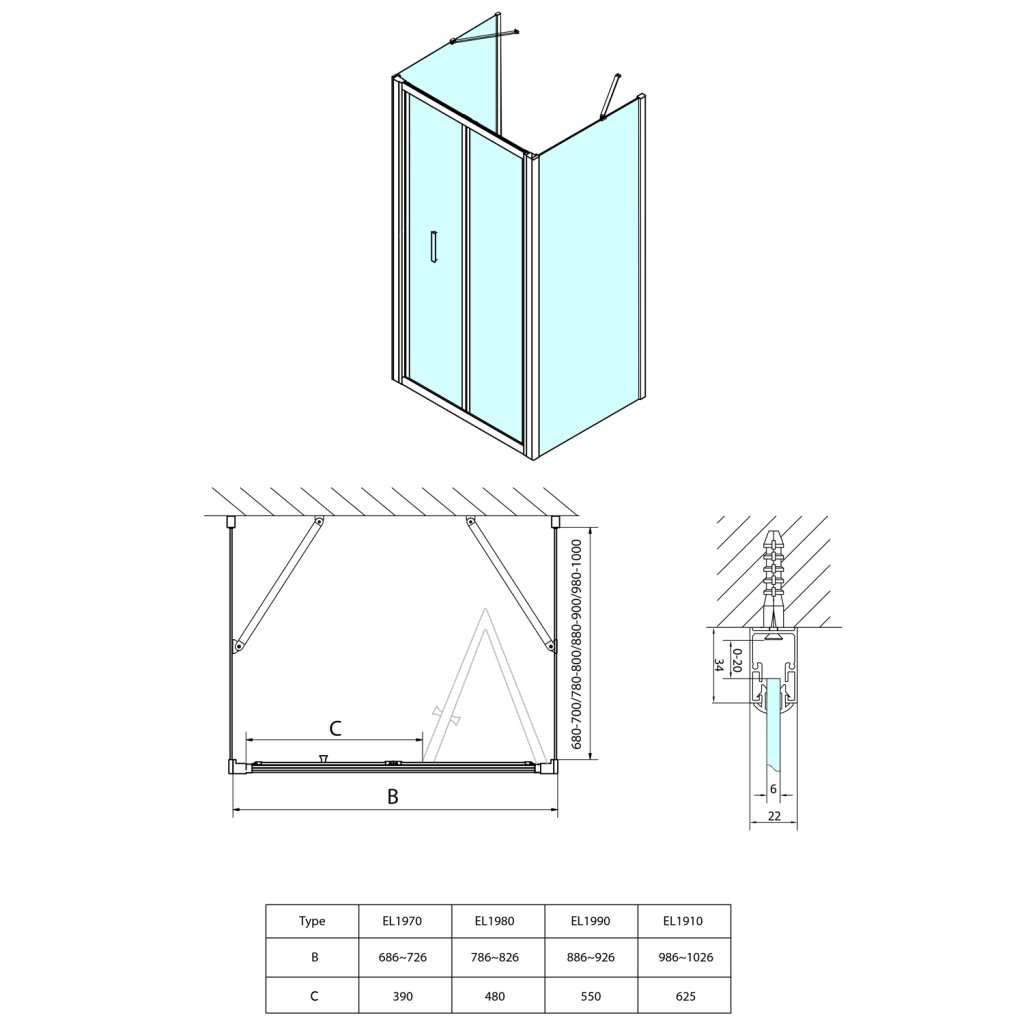 Séria EASY LINE – pevná bočná sprchová stena určená na kombináciu so sprchovými dverami. Rozmer šírky 800 mm a výška 1900 mm. Vyrobená z číreho bezpečnostného skla hrúbky 6 mm, doplnená o leštený hliníkový profil.