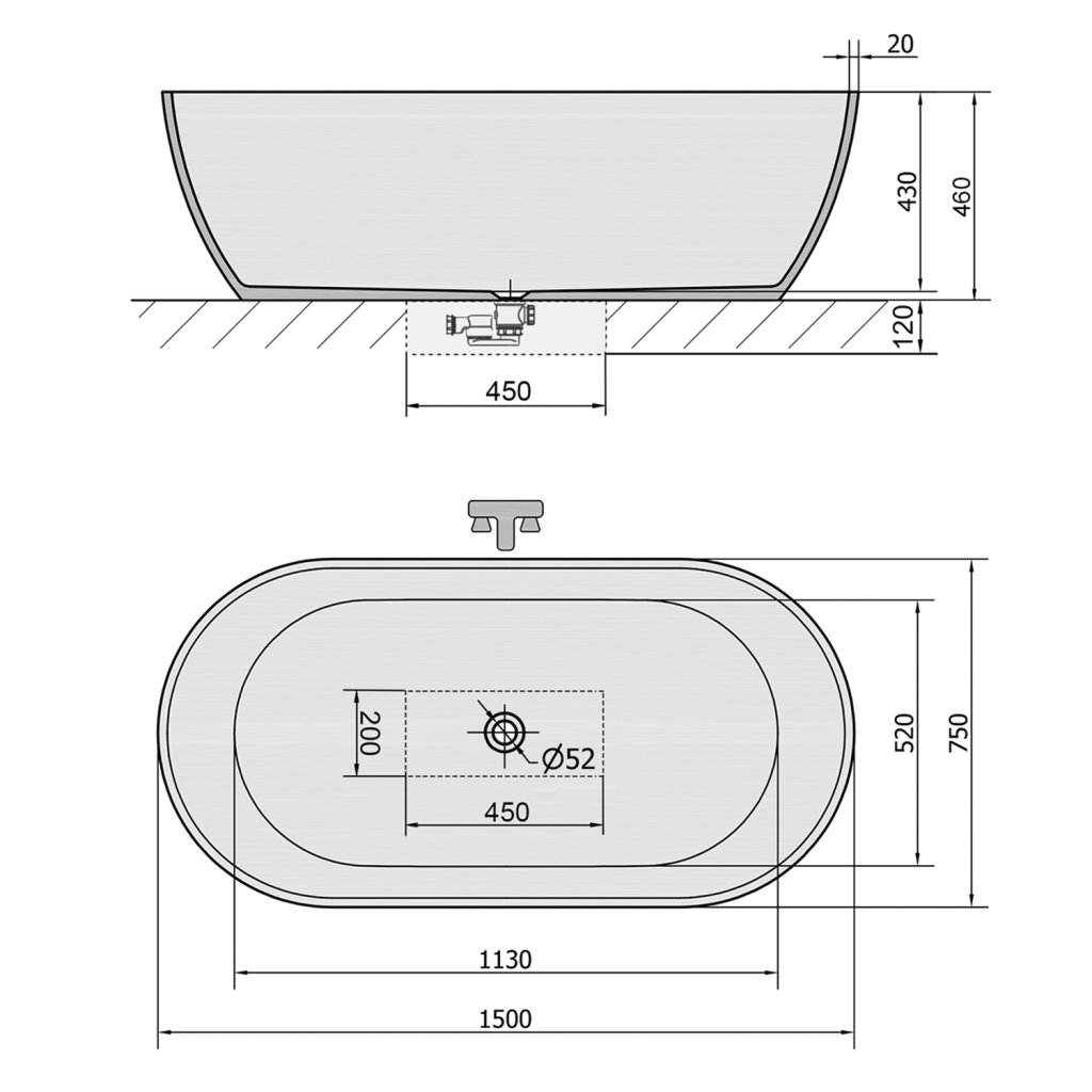 Polysan, REDUTA voľne stojaca vaňa liaty mramor 150x75x46cm, biela, 72843