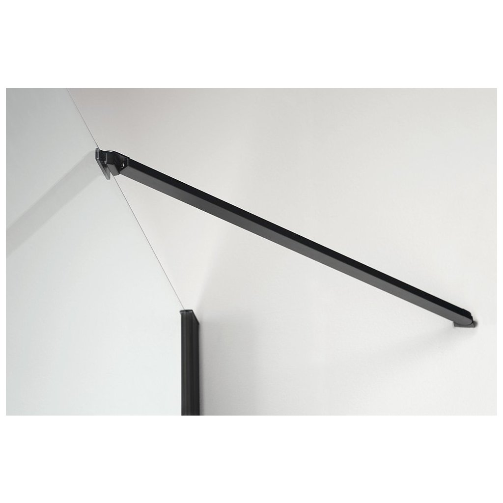 Špeciálne navrhnuté madlo pre pohodlné otváranie dverí. | Ploché magnetické tesnenie skryté v hliníkovom profile v modernom matne čiernom prevedení. | Stenové nerovnosti skryje hliníkový profil v čiernej, do ktorého možno zasounout sklo podľa potreby až 20 mm. | Otočný profil so zdvíhacou funkciou pre pohodlné otváranie. Čistá línia - sklo pretína profil na oboch stranách v rovnakej úrovni. Stabilitu skiel zabezpečuje elegantný vzpera s nastaviteľným uhlom uchytenie na oboch stranách. |