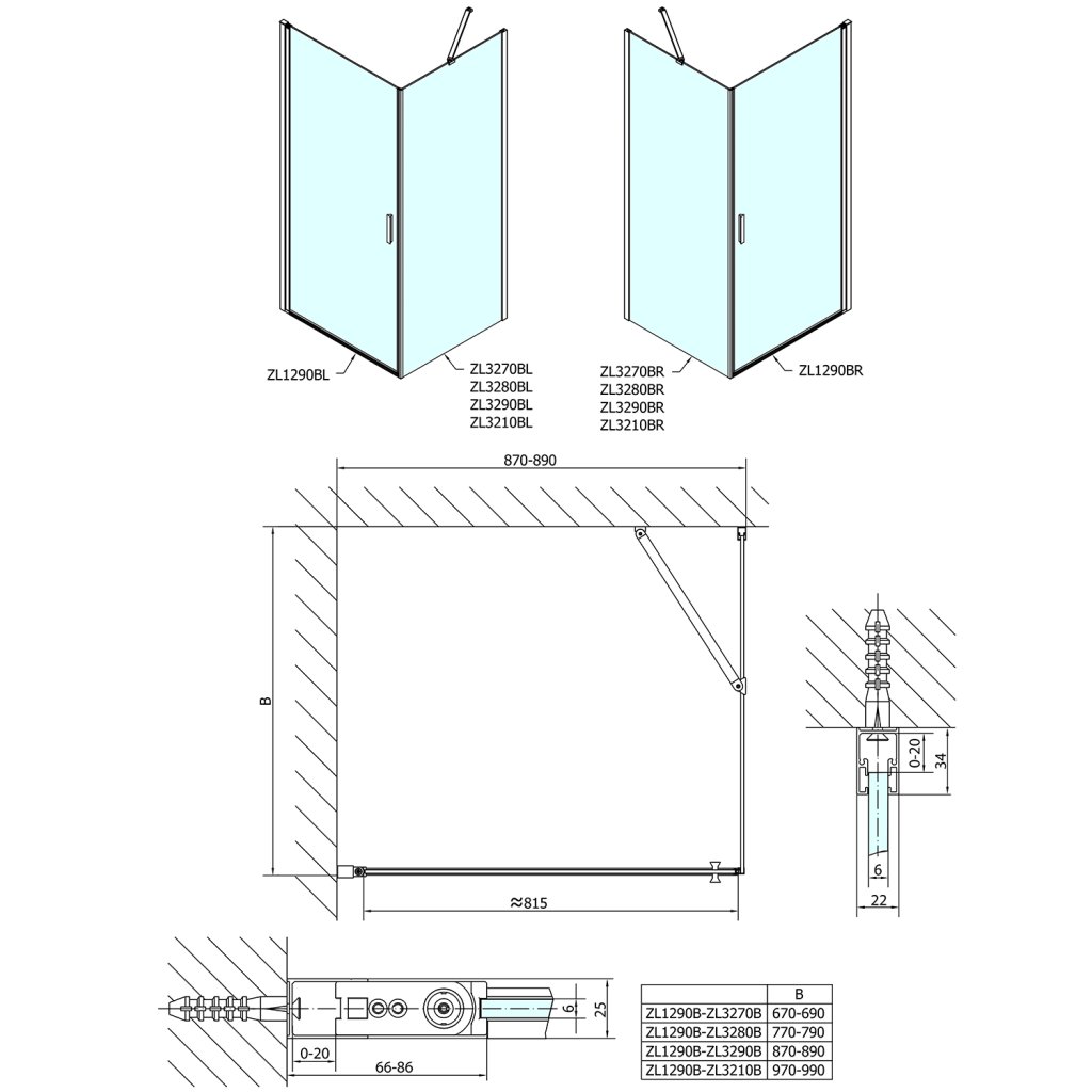 - Dvere je možné inštalovať do niky alebo v kombinácii s bočnou stenou, umožňujú variabilné inštaláciu s ľavým alebo pravým otváraním