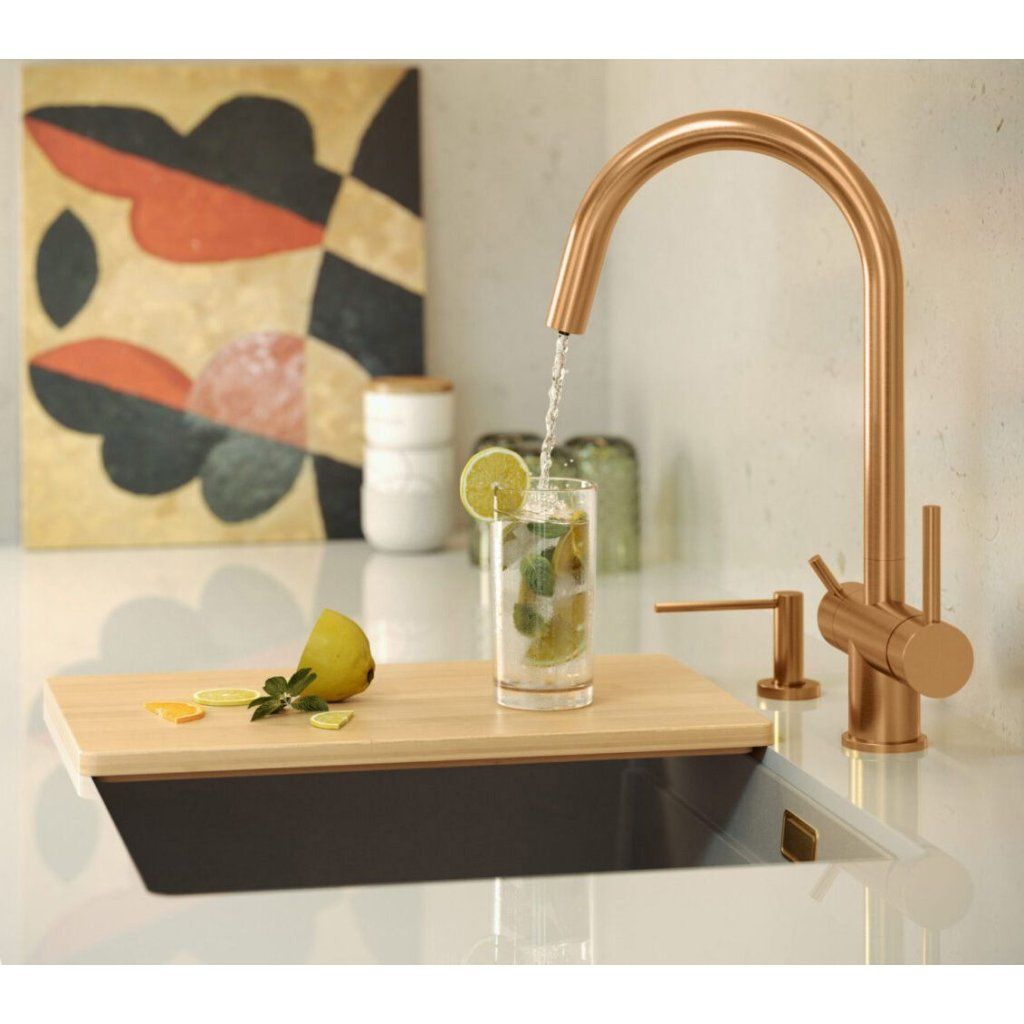 Vďaka špeciálnej, diskrétne umiestnenej páke si môžete vychutnať prístup k krištáľovo čistej vode bez nutnosti inštalácie ďalšieho výtoku – a to všetko pri zachovaní estetiky a poriadku na kuchynskej doske.