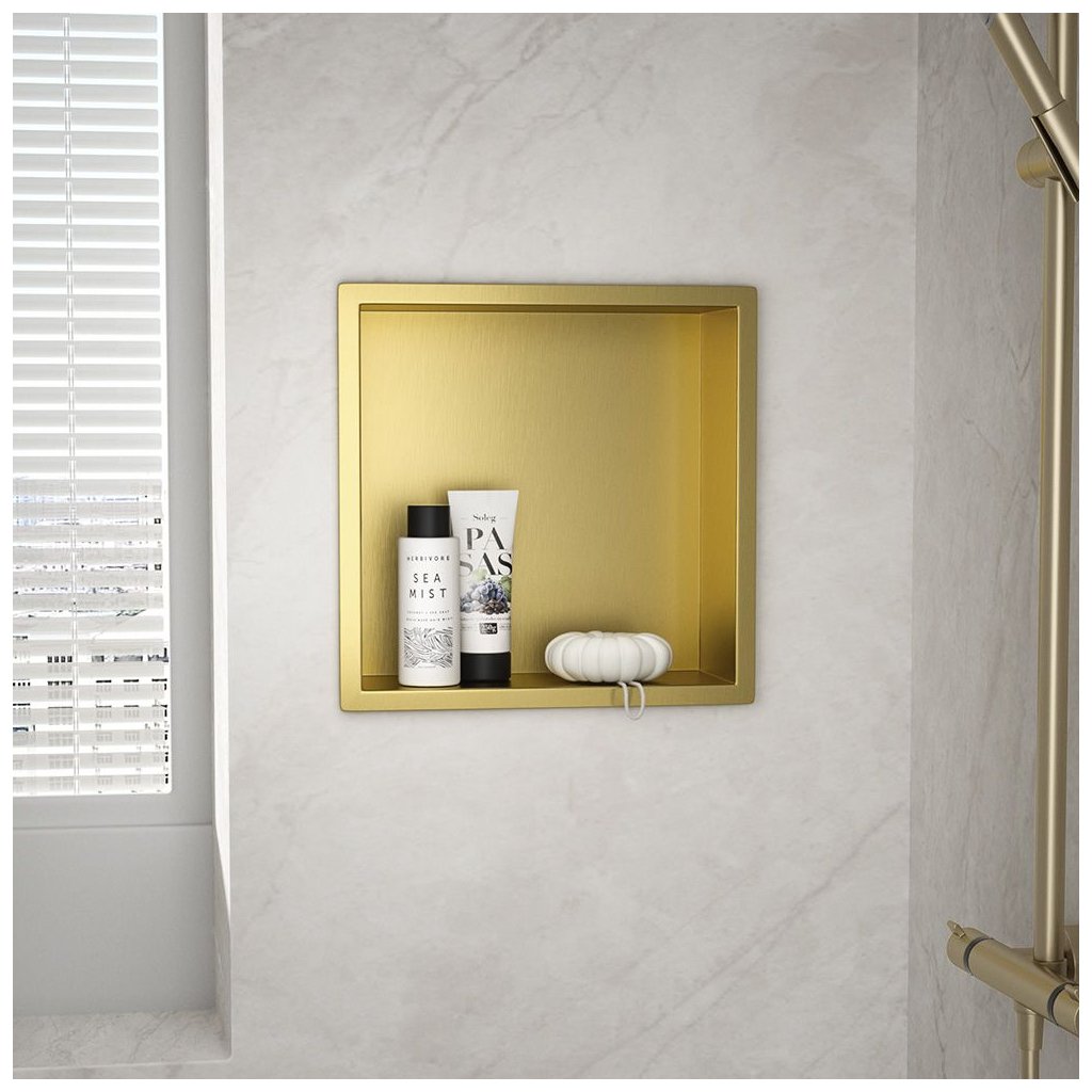 Rea, kúpeľňová polica na zapustenie 30x30 cm, zlatá matná, REA-05606