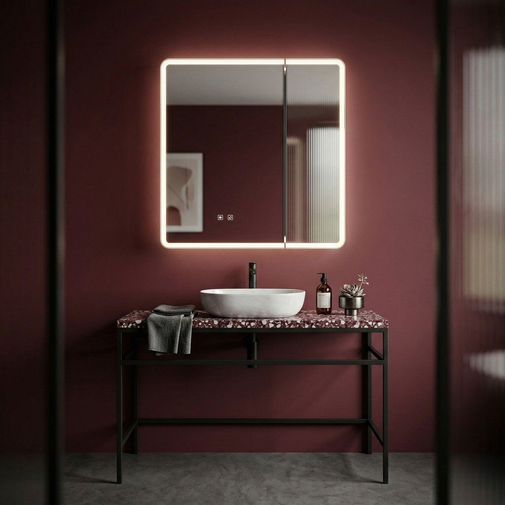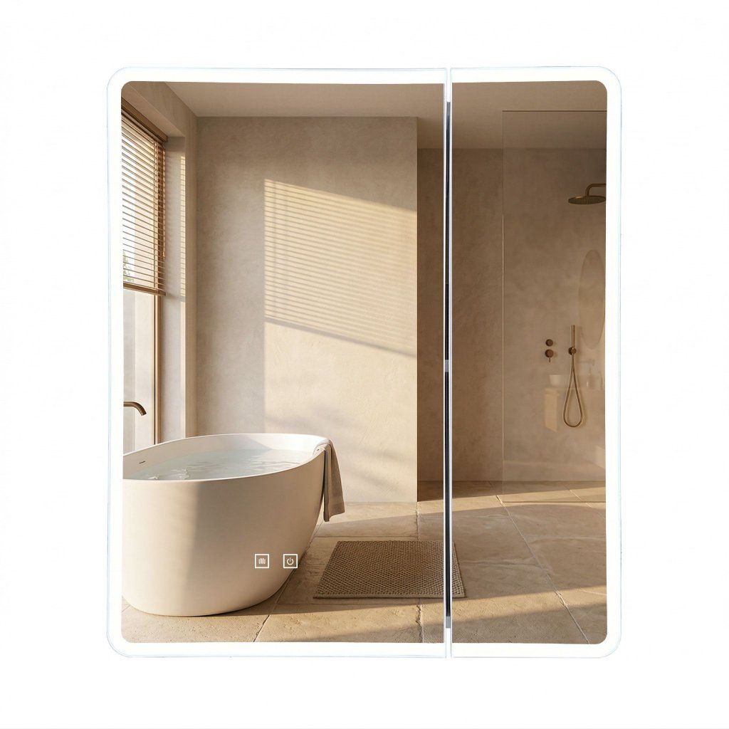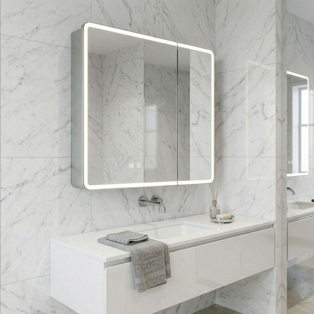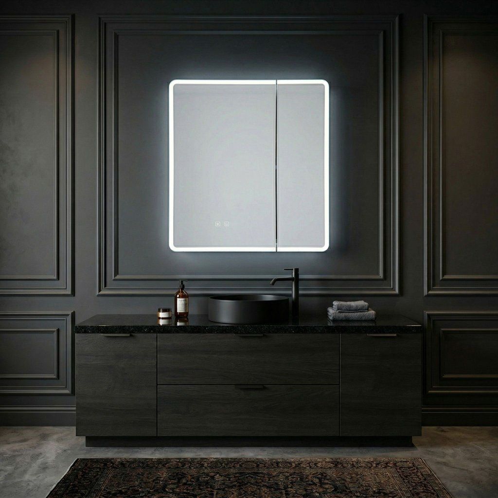 Zabudovaná vykurovacia podložka aktivovaná dotykovým senzorom priamo v zrkadle účinne zabraňuje zahmlievaniu tabule aj počas horúceho kúpania. Druhý senzor ovláda LED osvetlenie — oba sú nenápadne integrované priamo do plochy zrkadlovej tabule, bez viditeľných tlačidiel narúšajúcich čistotu dizajnu.