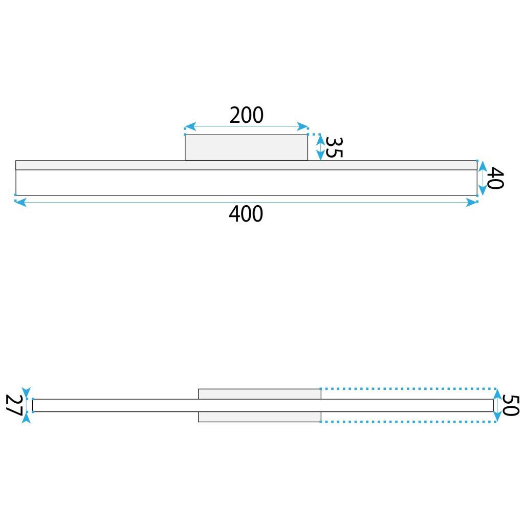 Mliečne lineárne tienidlo rozptyľuje LED svetlo rovnomerne po celej dĺžke 400 mm — plynulá svetelná línia bez bodov, bez tmavých miest. Farebná teplota 4000 K (neutrálna biela) zaručuje čisté svetlo vhodné pre zrkadlo, pracovnú plochu aj nočné čítanie.