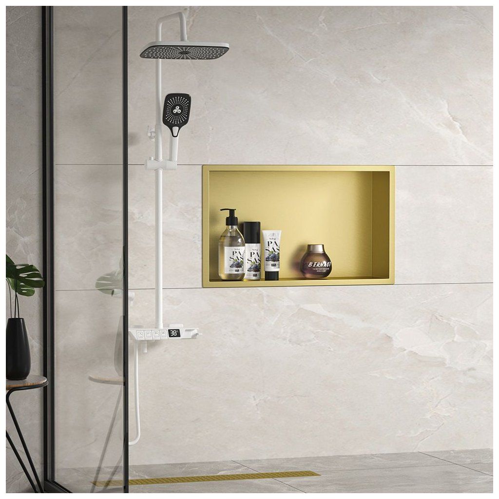 Rea, oceľová kúpeľňová polička 45x30 cm, zlatá matná, REA-05607