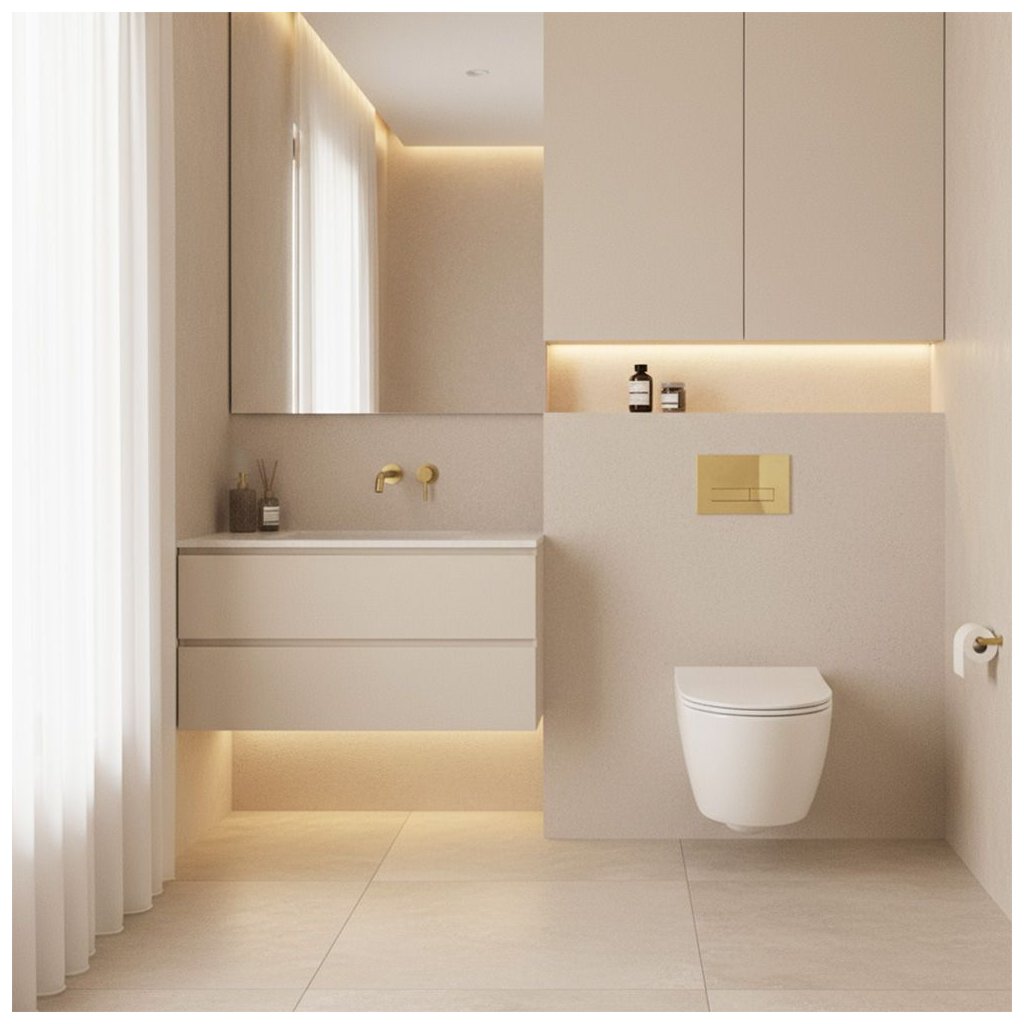 Rea, podomietkový WC systém K011A-Q + tlačidlá HD, zlatá matná, KPL-E9560